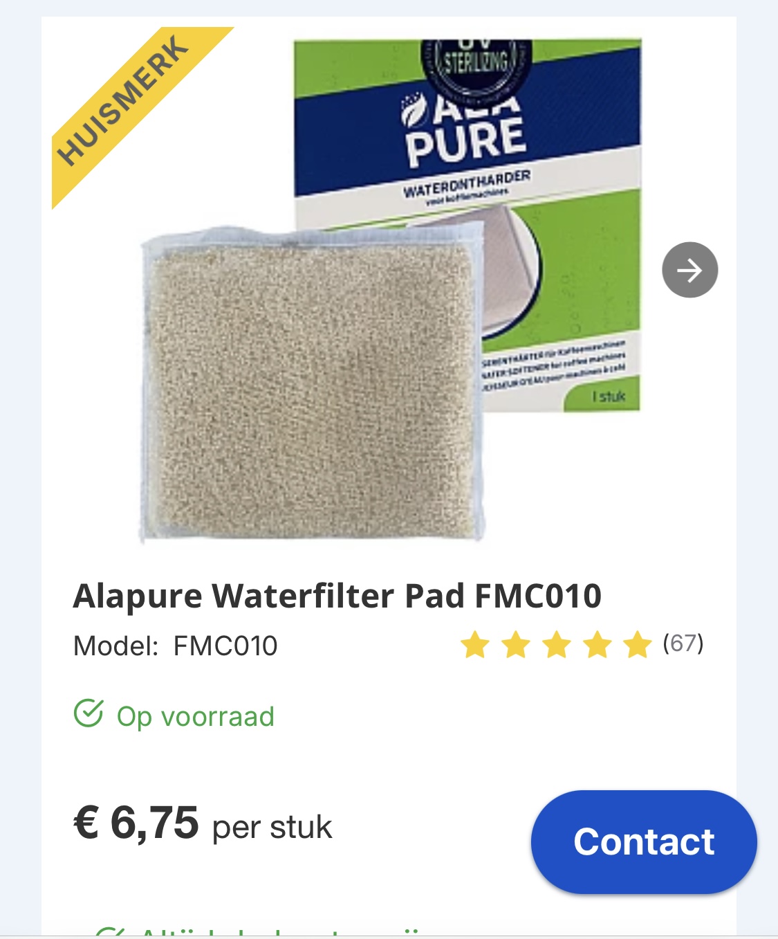 Over te nemen voor 20 euro. Kosten bij waterfilterexpert 6,75 euro per stuk.