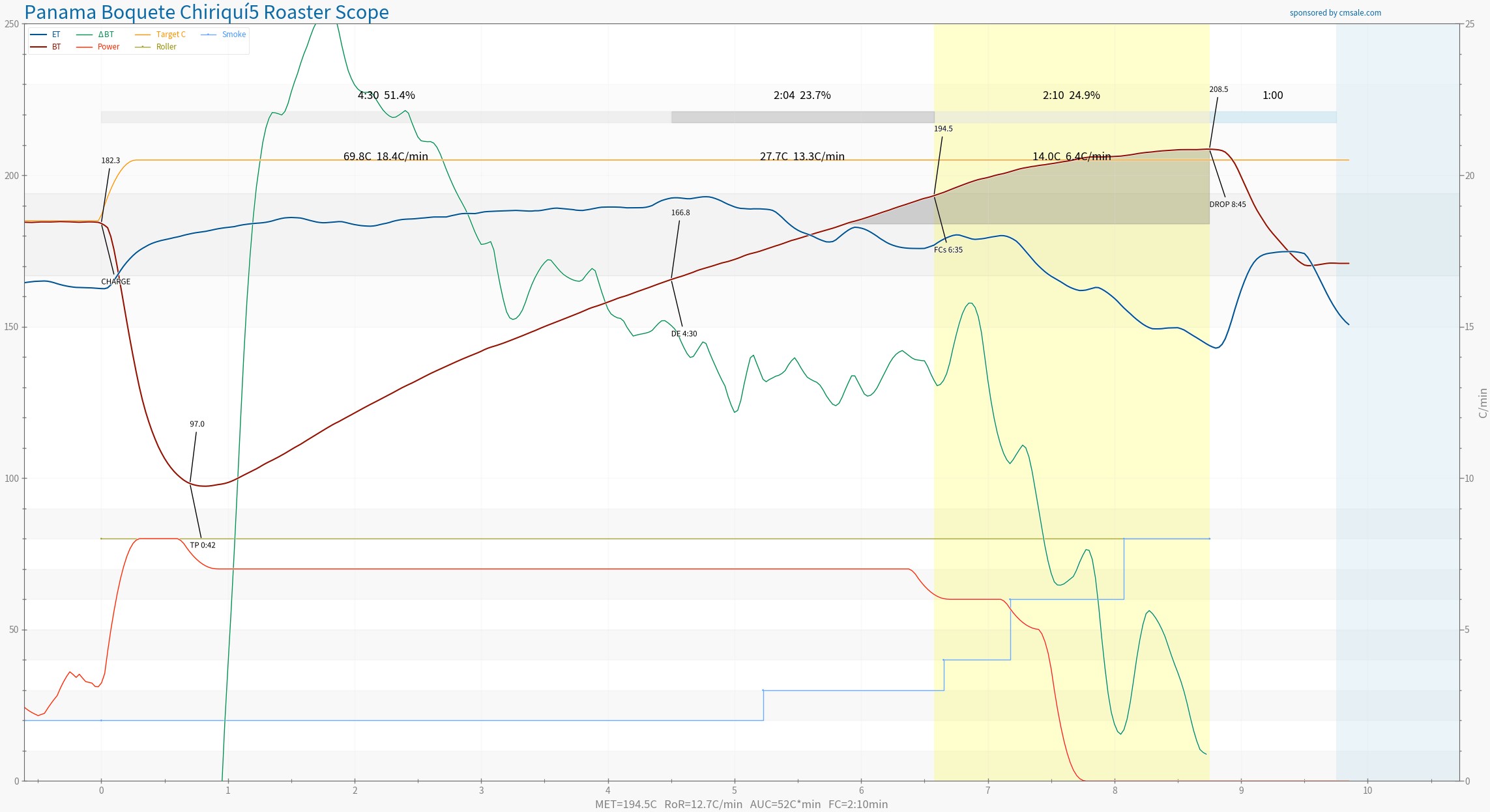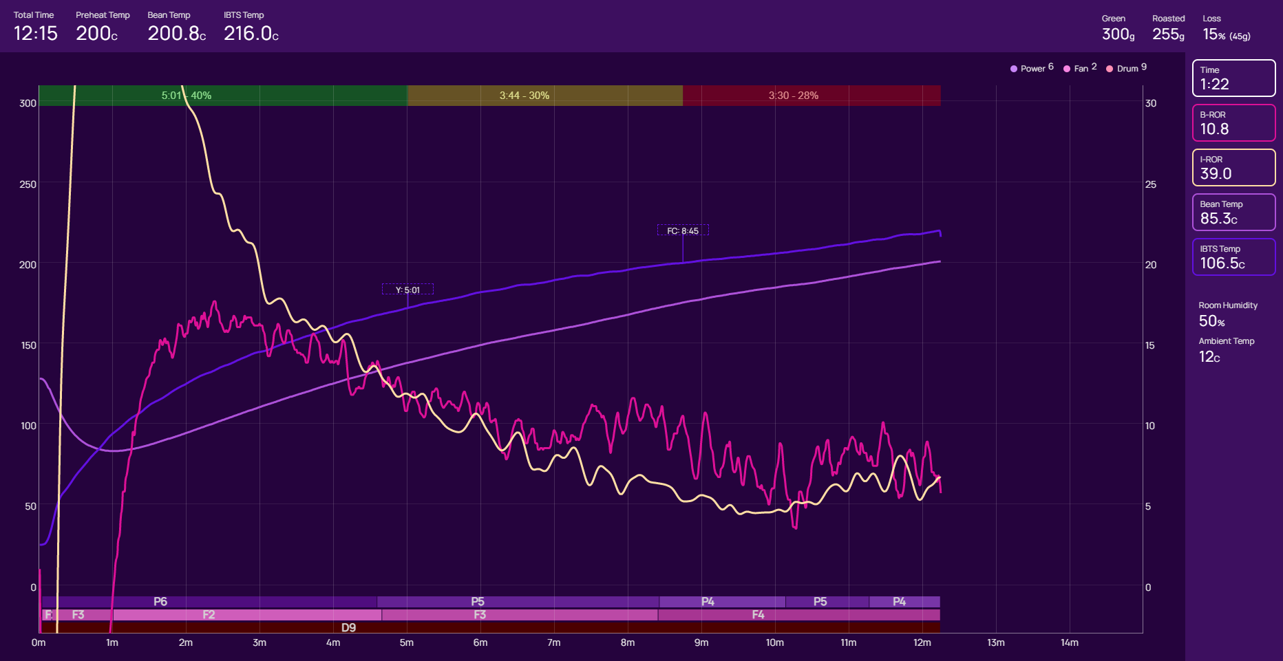 Misschien vereist het branden van 200 gram batches ook wel een aangepaste techniek. Ik heb nog nooit zo weinig per keer gebrand. Ik zie je laatste branding en die lijkt behoorlijk mooi qua opbouw en is toch erg snel.