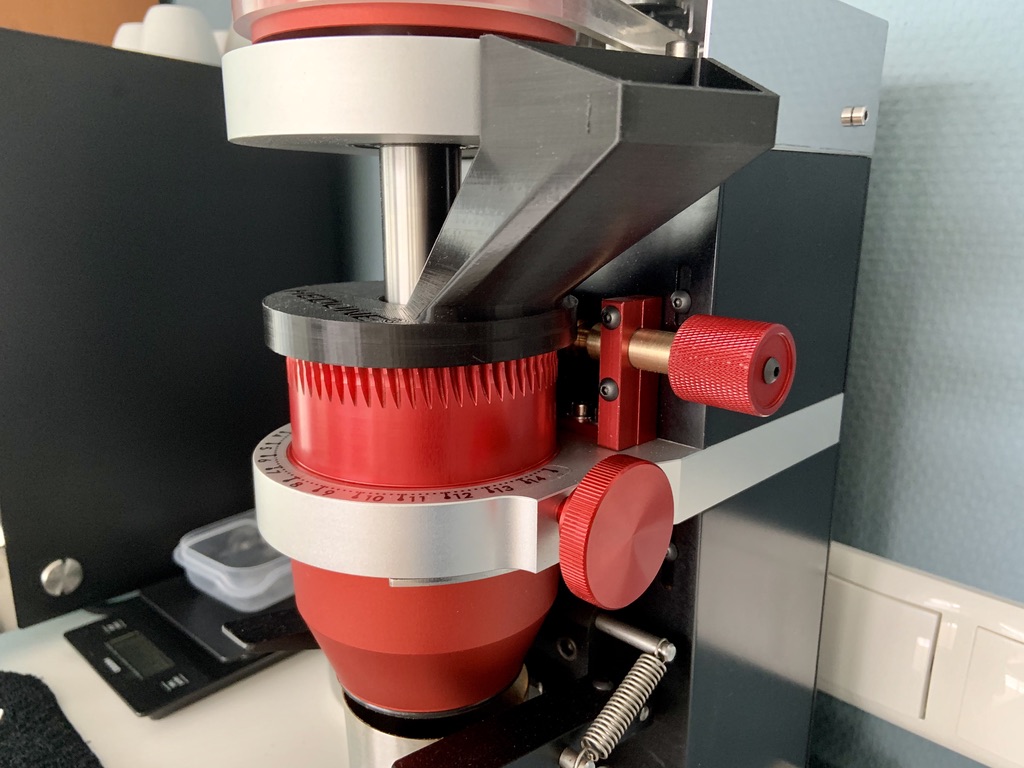 - in the last picture you can see the fine grind adjustment mechanism (the red wheel which is turning the red cone)