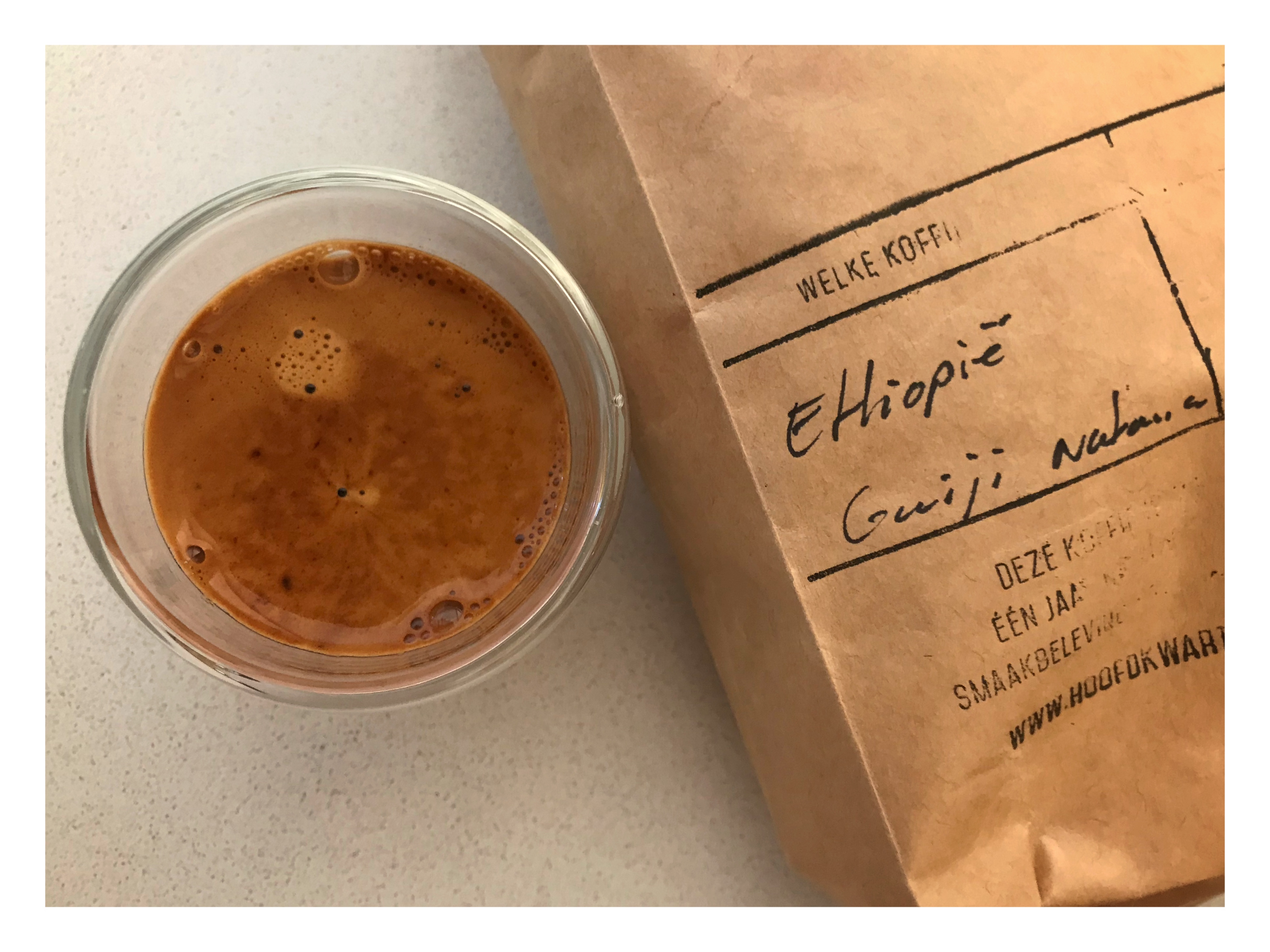 Espresso smaakt heel lekker en vooral floral, beloofde percik en aardbei heb ik nier gevonden, maar het ligt aan mij denk ik.