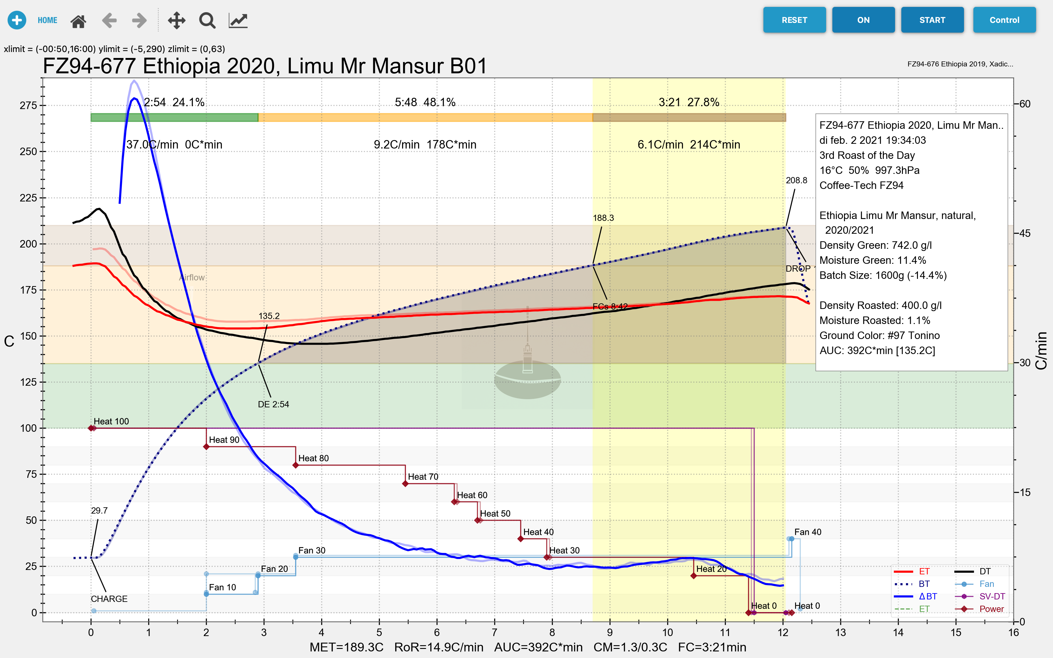 Dit keer was het de Brazilië Mogiana natural, die ik 22 minuten bij een temperatuur van 230° heb gebrand. Het resultaat is super, zo lekker heb ik hem nog nergens in de horeca in Nederland kunnen drinken.