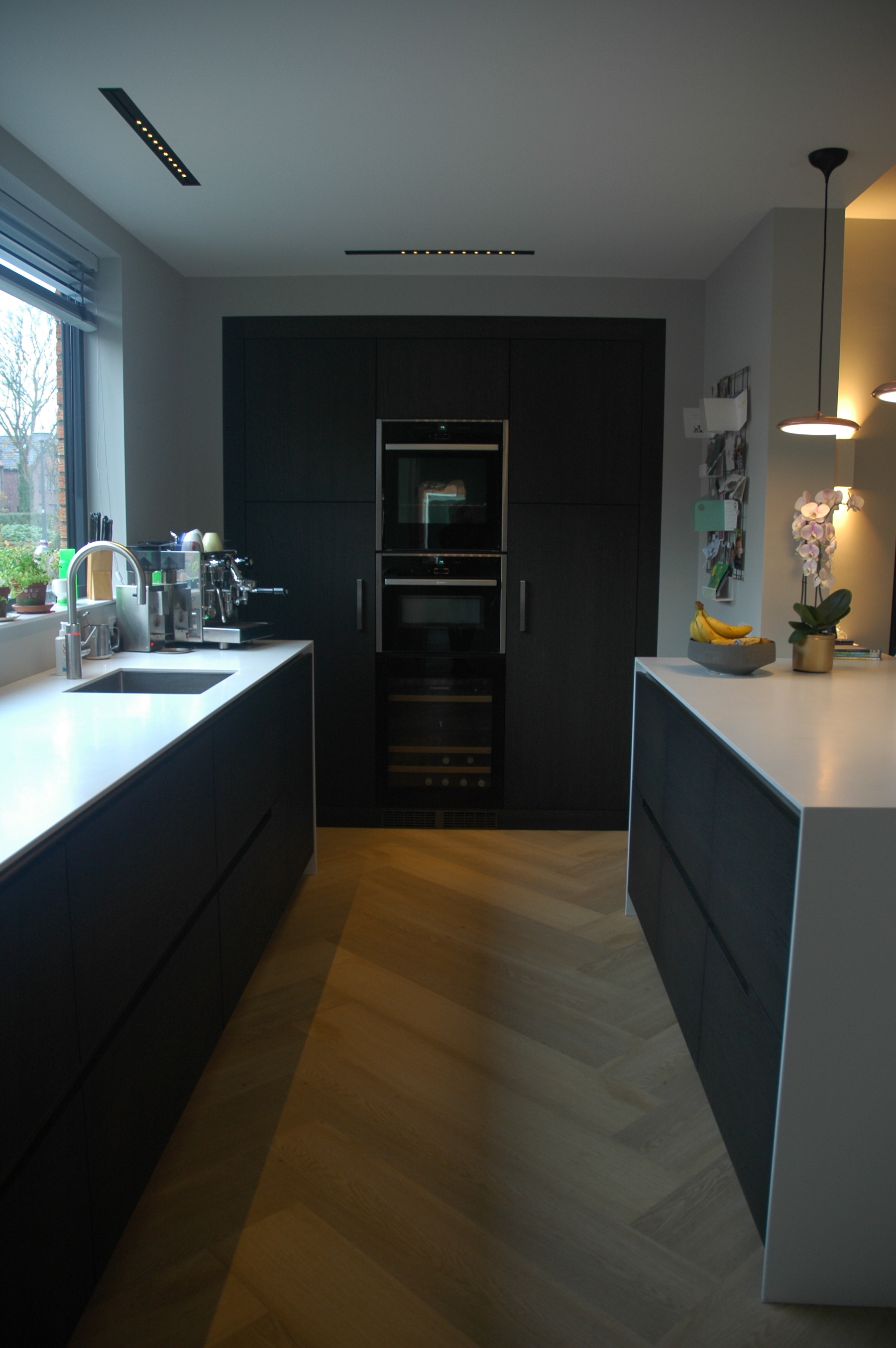 Ik ga wel met de keukenzaak bespreken of er op een mooie manier 2 stopcontacten gemaakt kunnen worden zodat we de apparaten eventueel op het eiland kunnen zetten zonder dat de snoeren al te veel in het zicht lopen.