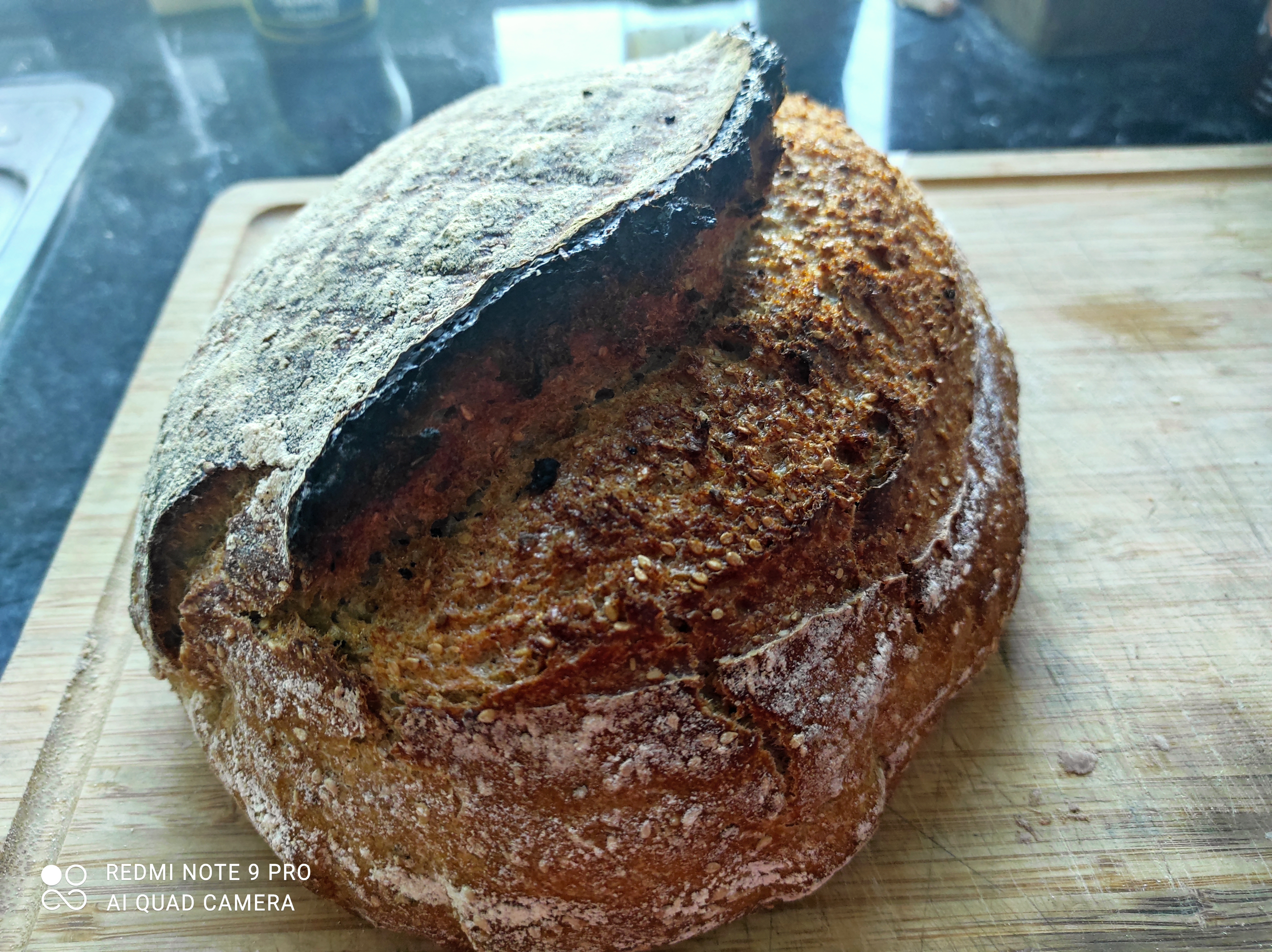 Niet gekneed, wel 1x omgeslagen. Koude reis van uurtje of 12. Ik denk dat ik binnenkort eens met het toevoegen van zaden ga experimenteren. Die broden van cremalover zagen er smakelijk uit.