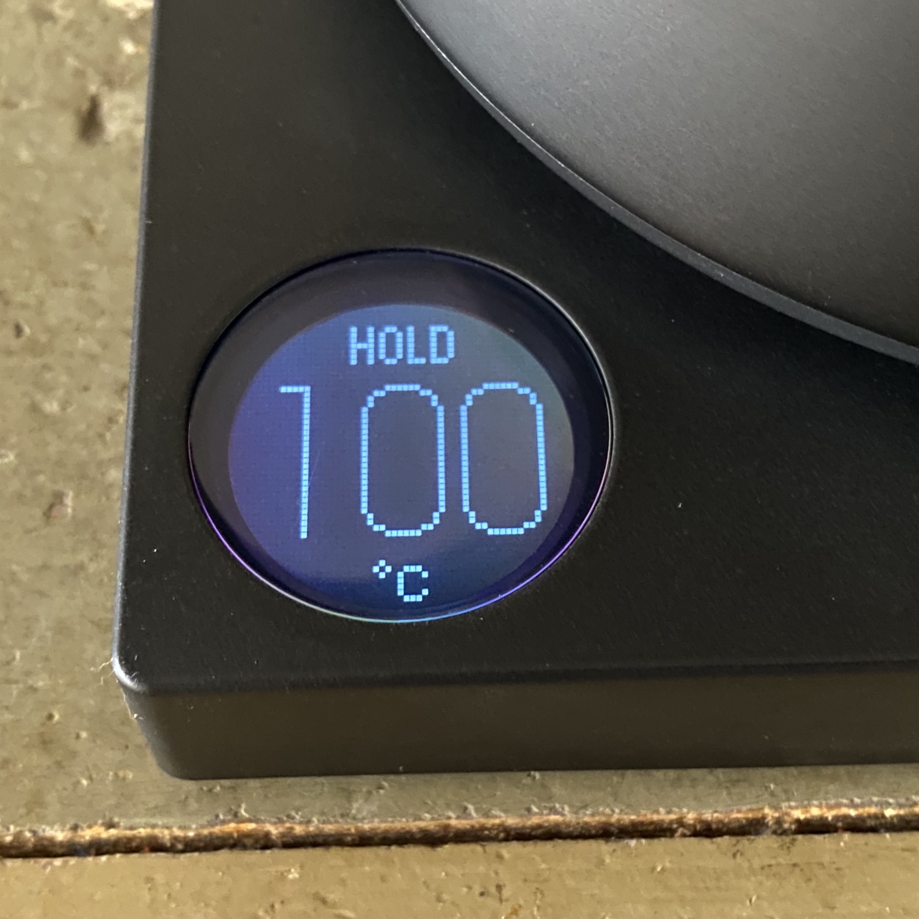 Ik drink graag water van 65ºC of ietsje heter maar niet zo heet dat men zijn muil brandt. Tot nu toe deed ik dat door water te koken, dat in een thermosfles te doen, er wat koud bij te gieten en dat te gebruiken. Nu kan het eindelijk heel exact op temp gehouden worden wat natuurlijk nergens voor nodig is maar wel leuk.
