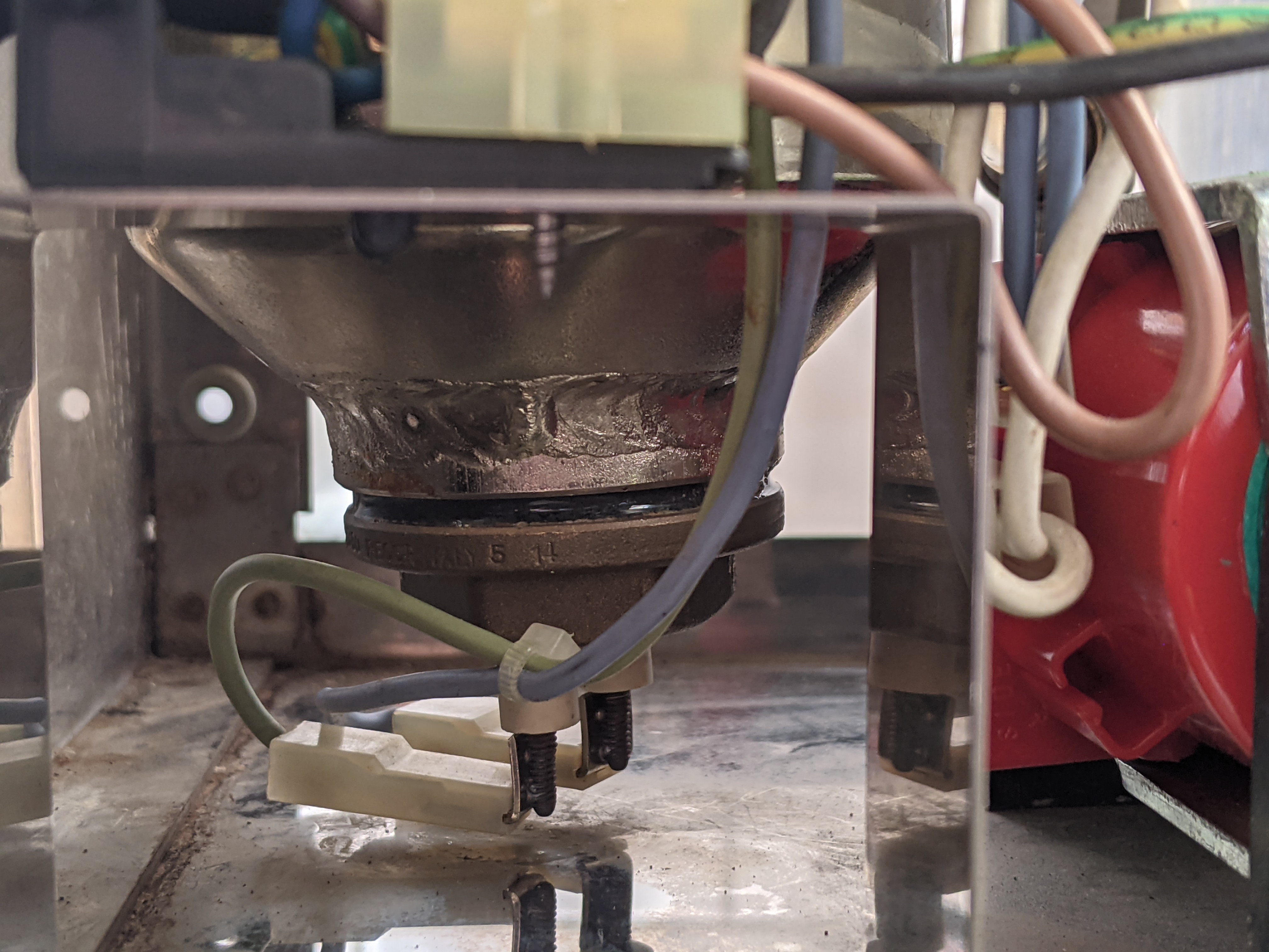 Echter, na krap twee dagen experimenteren sloeg vandaag de aardlekschakelaar door. Het goede nieuws: gelukkig bleek het niet de stoppenkast te zijn die besloot dat de espressomachine teveel was. Het slechte nieuws: er is iets mis met de espressomachine. Het goede nieuws: ik denk dat ik mag sleutelen.