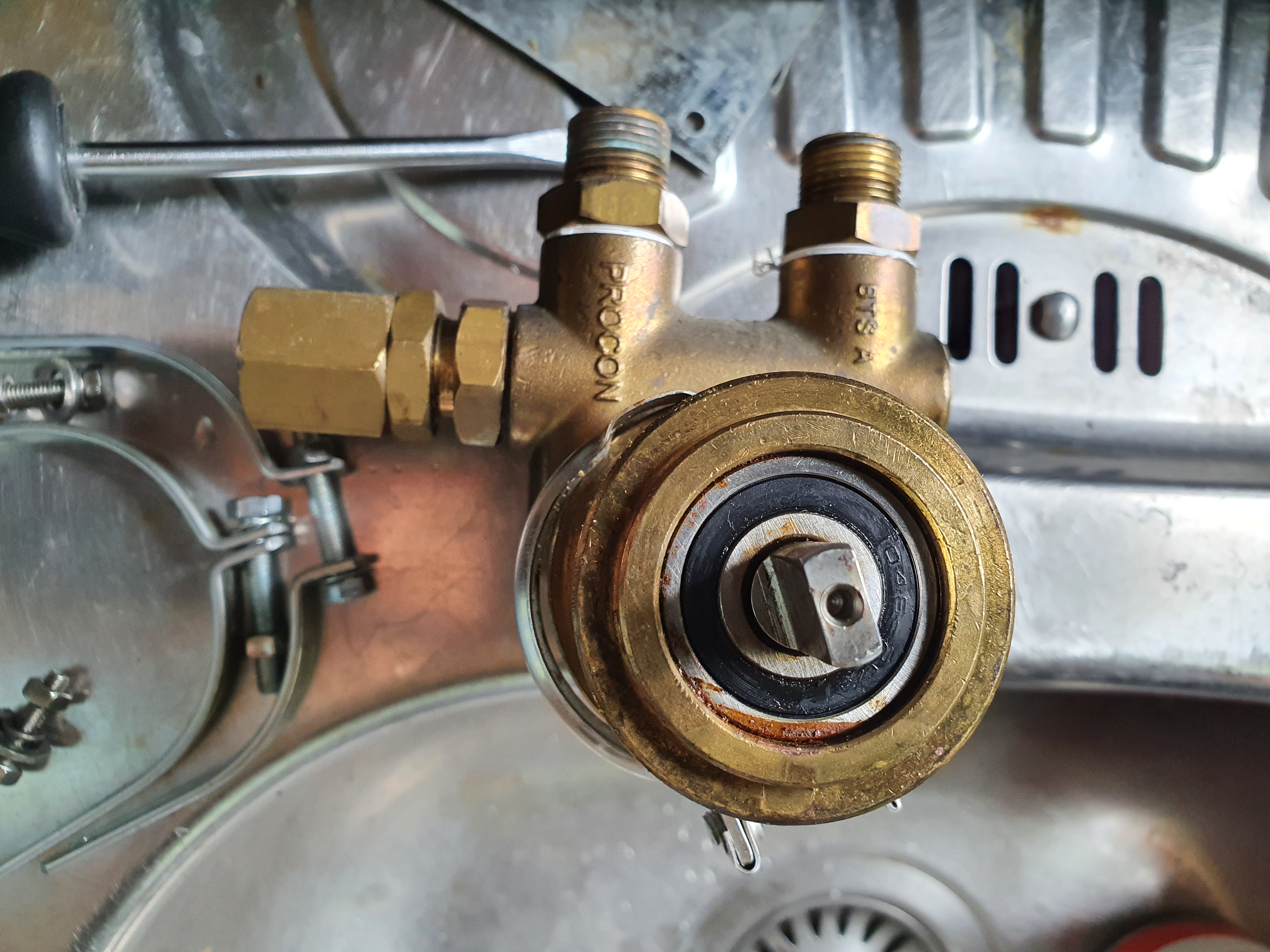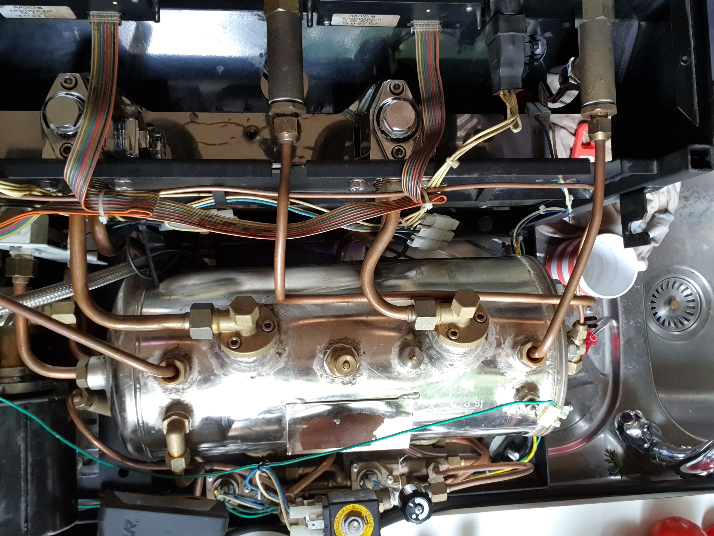 Zo gezegd zo gedaan en inderdaad, de druk ging netjes omhoog en de temperatuur van het water dat uit de groepen kwam was nu ook prima in orde.