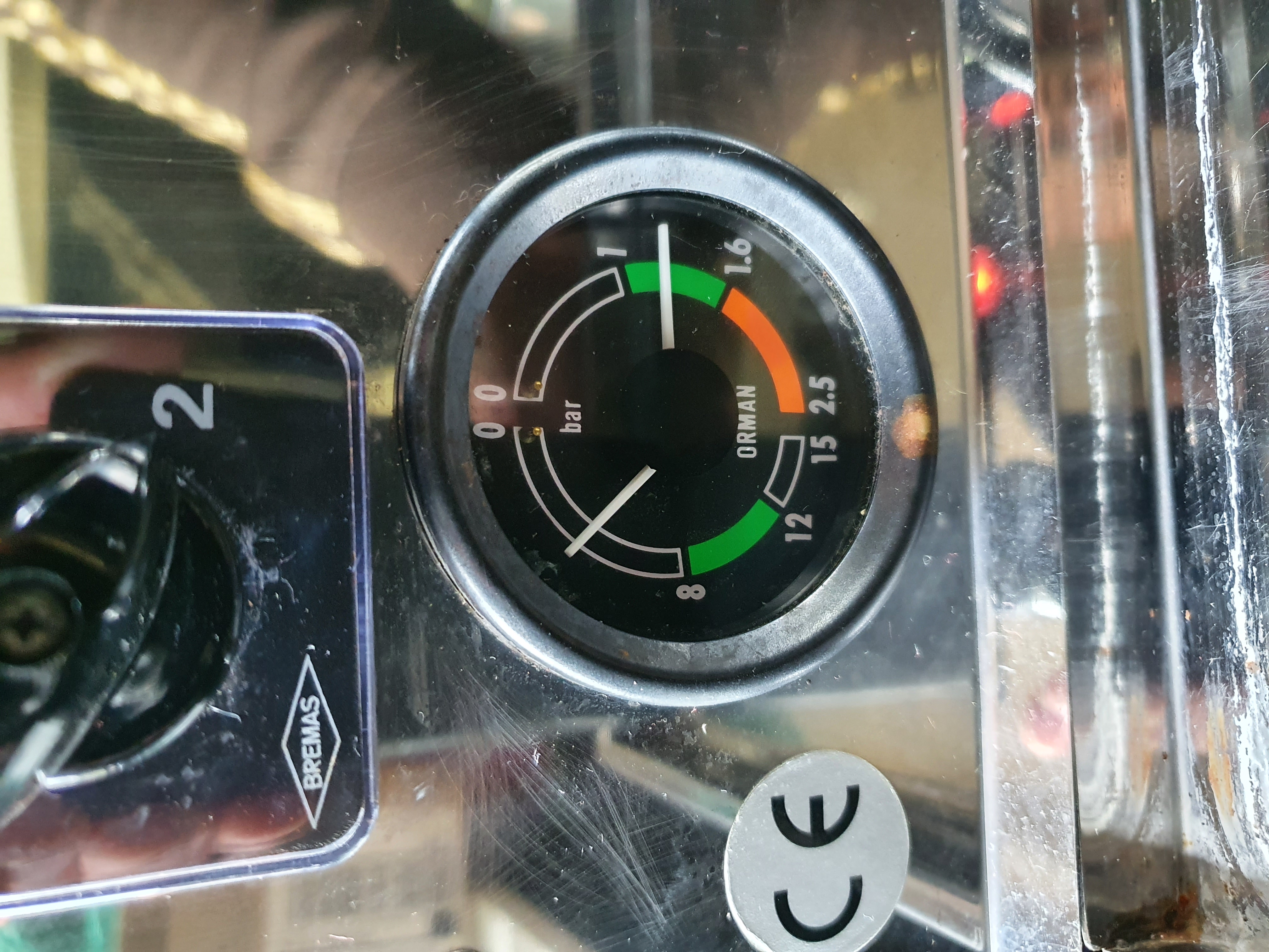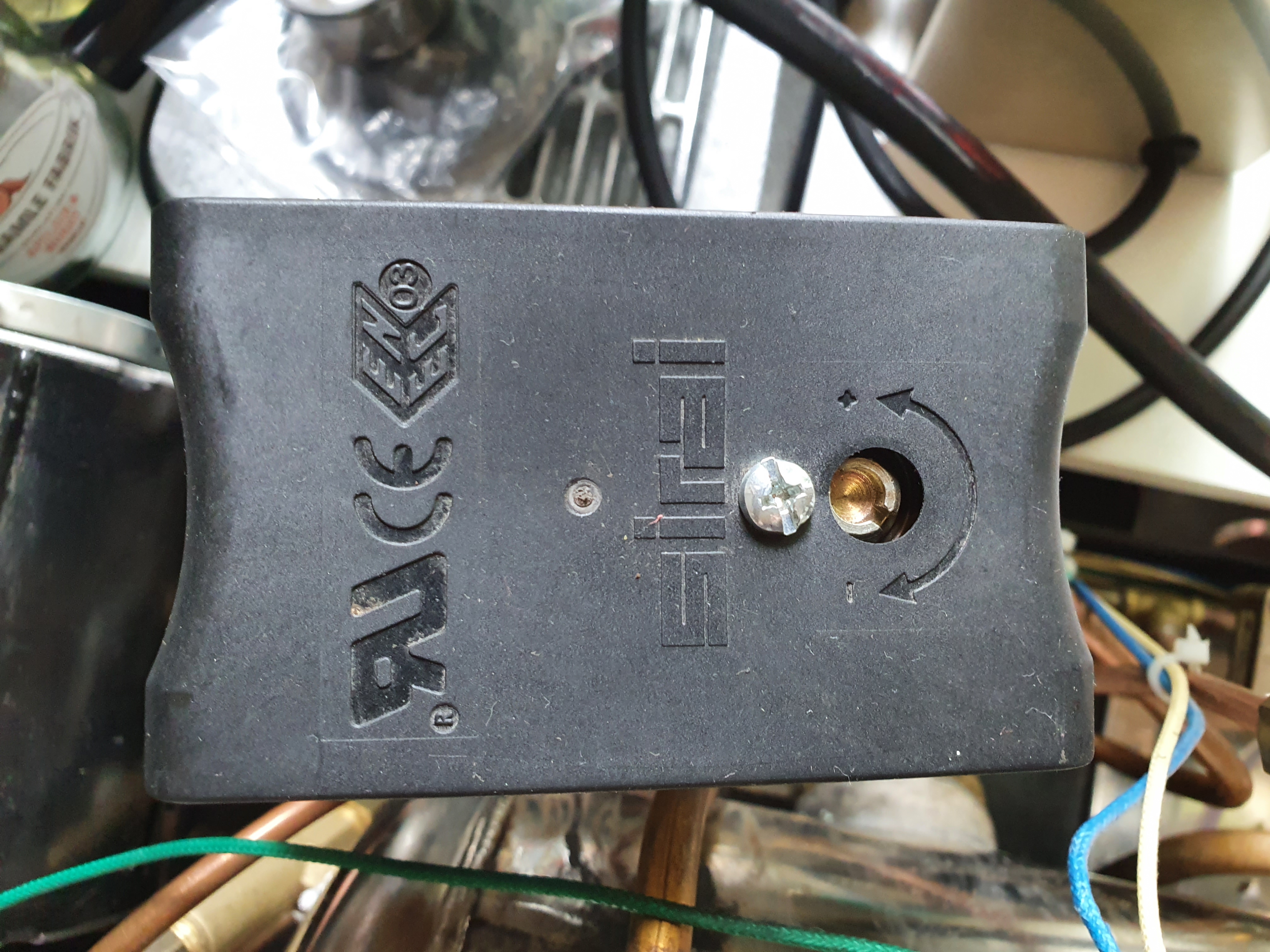 De Sirai pressostaat Deze afstellen zou de druk aan de rechterzijde van de drukmeter in orde moeten brengen en daarmee ook gelijk de temperatuur van het water in de groepen, want die was te laag.