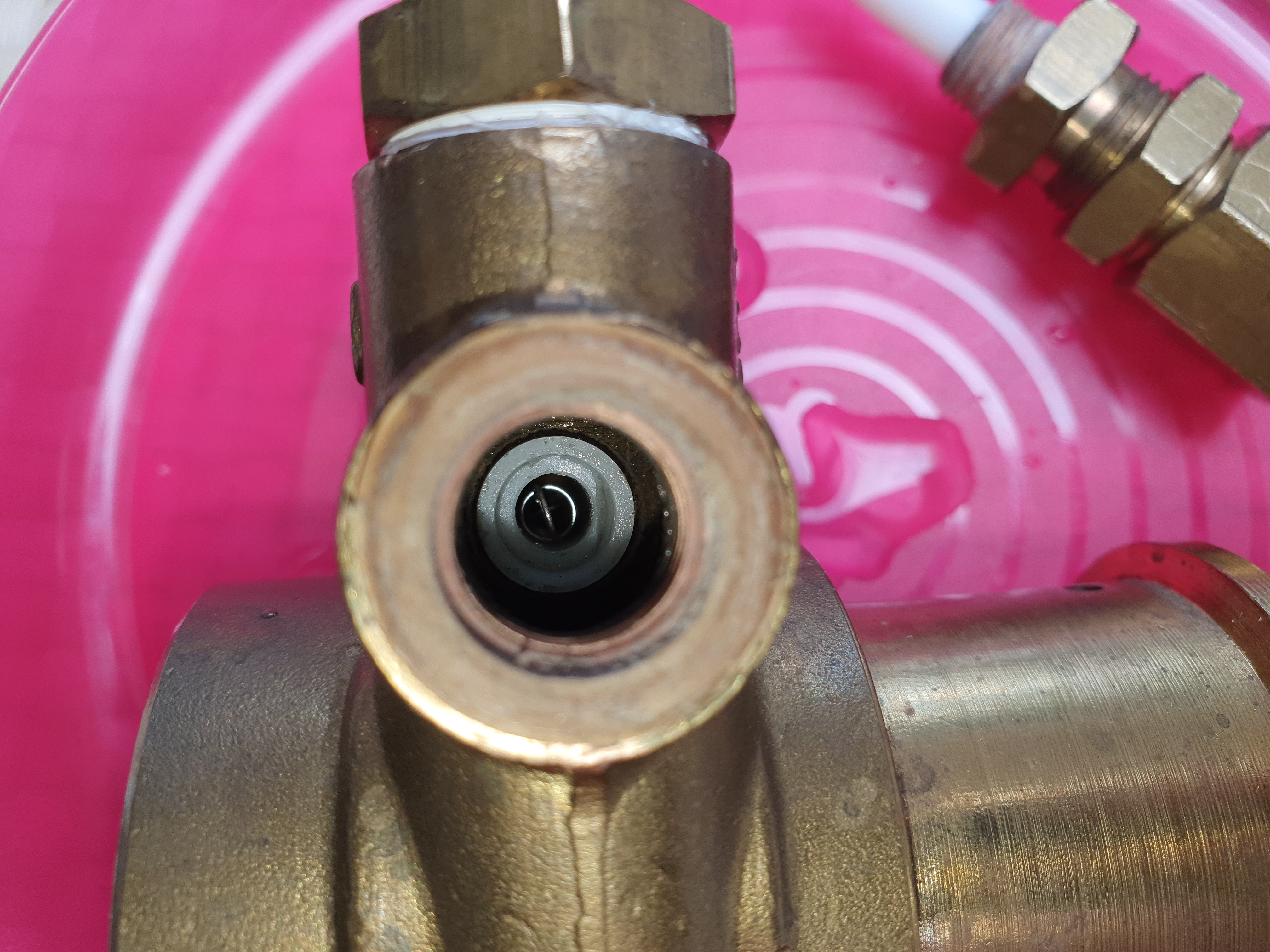 Dan die relieve valve maar eens wat verder onderzoeken, de pomp erweer vanaf gehaald en de relieve valve er vanaf gedraaid.