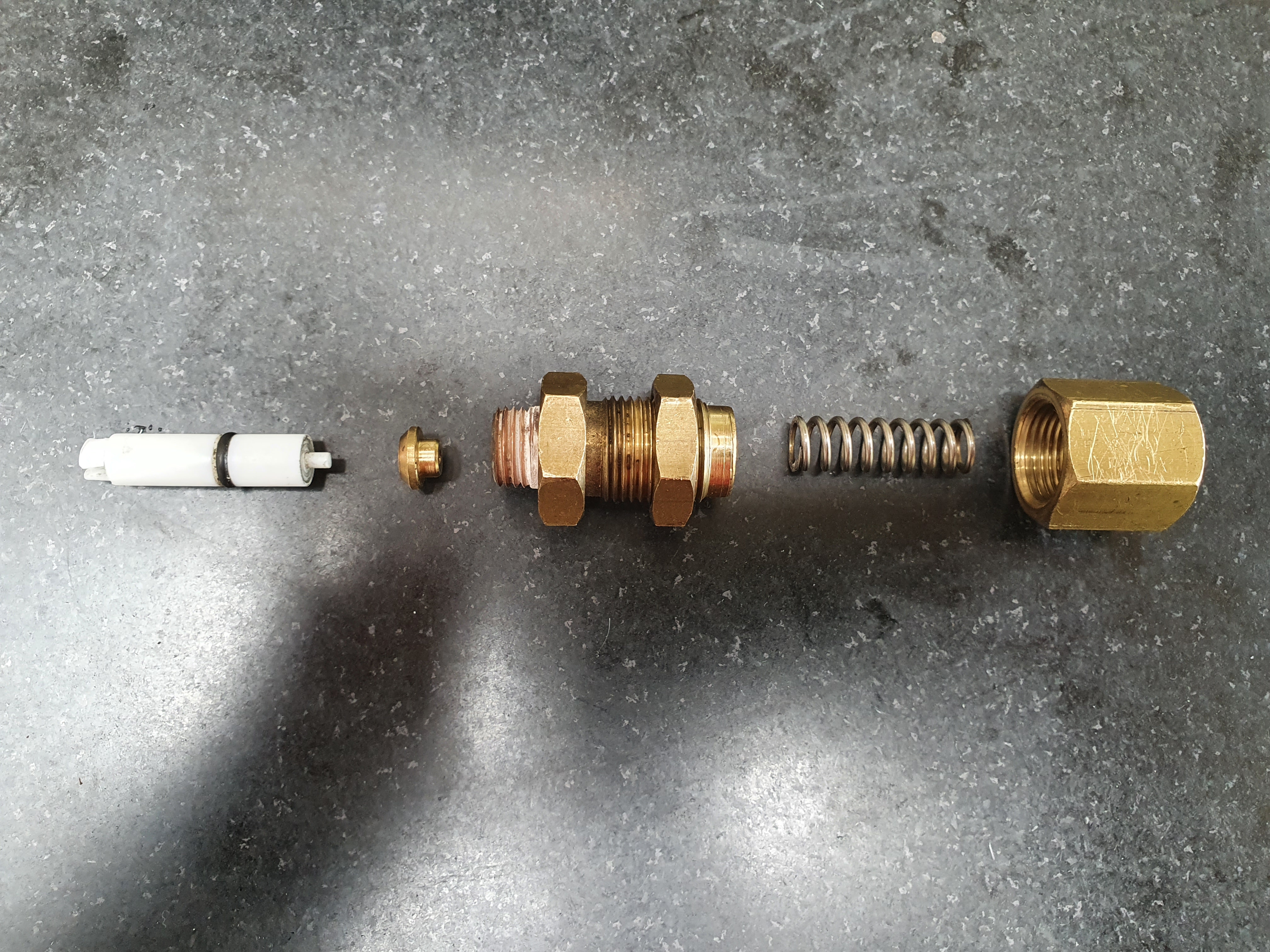 Optie 1 of optie 2 Deze relieve valve schoongemaakt en weer in elkaar gezet, eerst optie 1 en daarna optie 2. Met beide varianten de pomp weer teruggezet, machine aan. Relieve valve van helemaal open tot helemaal dicht, maar helaas ook in beide gevallen geen enkel effect op de druk, bij het activeren van de pomp (flow) schoot deze direct naar 12 en bleef daar.