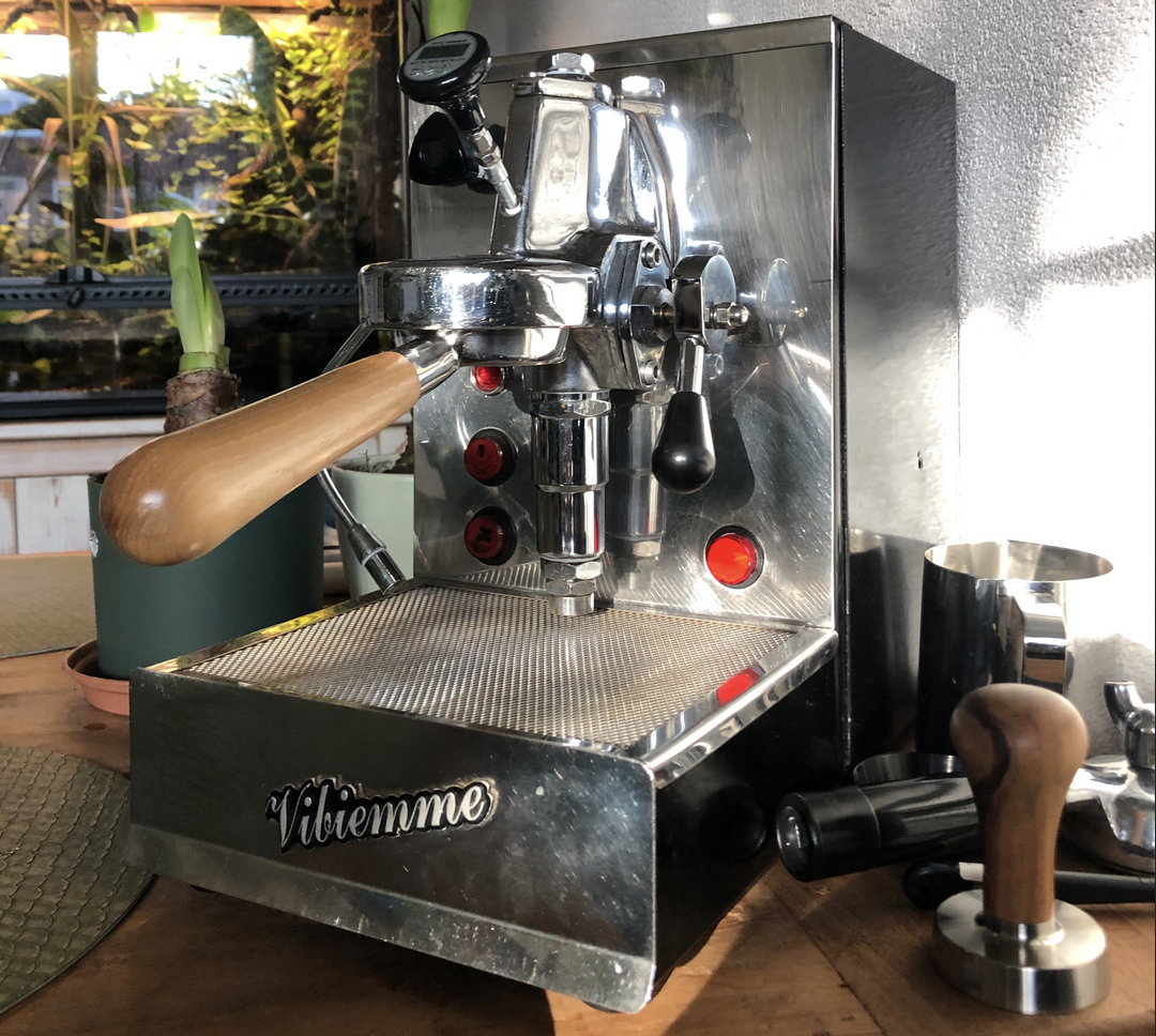 na al een tijdje wat serieuzer met filterkoffie bezig te zijn ben ik me nu al een paar maanden meer aan het verdiepen in espresso. Een tijd zat ik te denken om een kleiner budget te spenderen en voor een 2ehands Silvia te gaan om die zelf te modden met OPV en PID. Maar na meerdere berichten gelezen te hebben met adviezen iets meer uit te geven zodat je minder snel wil upgraden, en omdat ik toch zelf niet direct wilde gaan zitten sleutelen aan de machine heb Ik deze week de sprong gewaagd en een oud model 2ehands Vibiemme Domobar aangeschaft met wat upgrades en extras. Het bleek al wel meteen dat ik me dus niet genoeg ingelezen had want waar ik eerst dacht dat het om een HX machine zou gaan is dit de nog ouderen simpele enkele boiler model :oops: . Nu denk ik ook al weer of ik niet toch nog een klein beetje meer uit had moeten geven voor een Bezzera BZ07....maarja zo blijft je natuurlijk denken :roll: