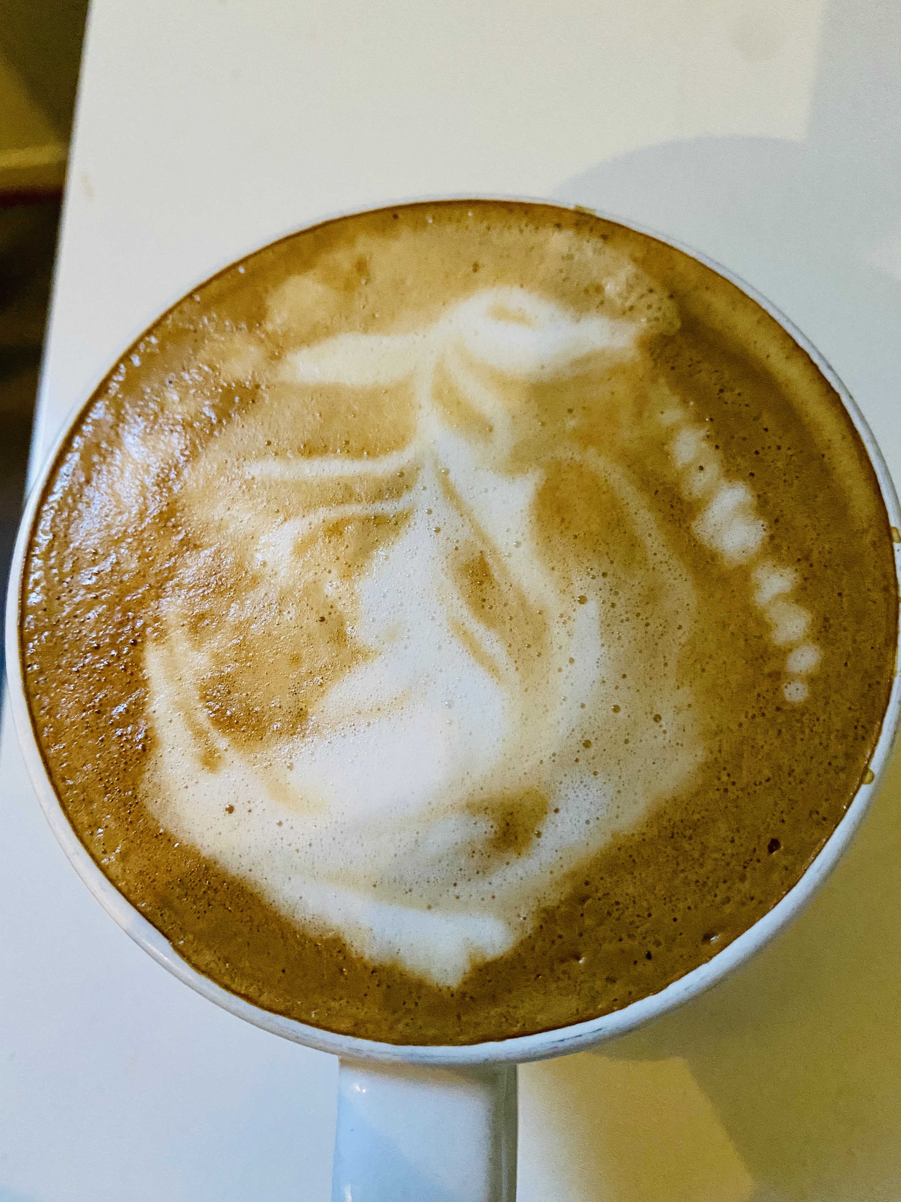 Niet hele mooie foto en wat gespetterd in het kopje, maar hij smaakte top