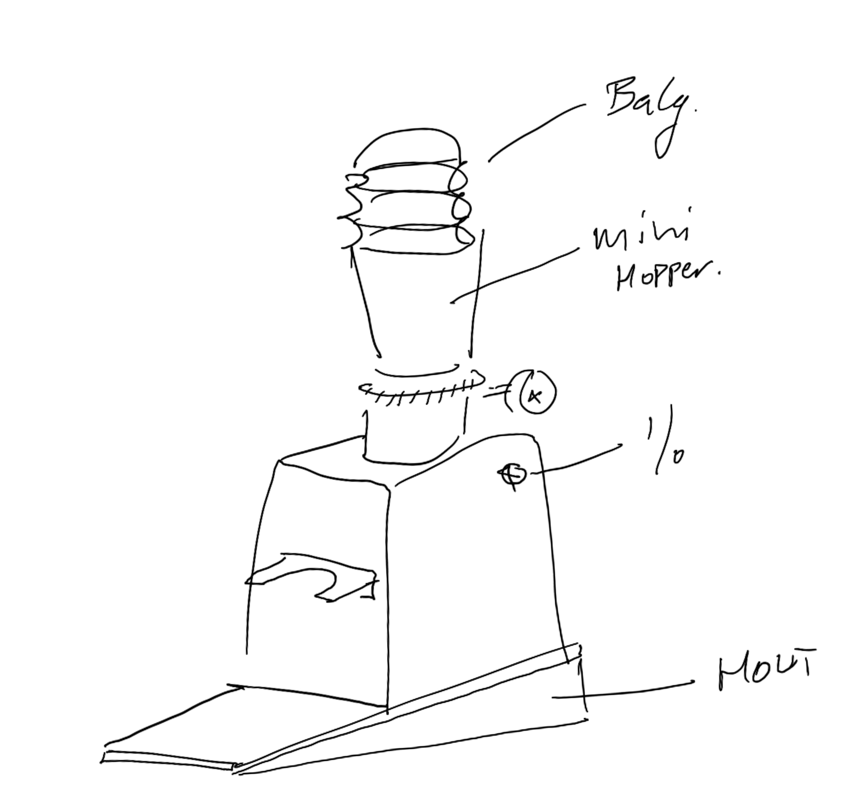 (Hieronder de ruimte die vol blijft zitten na de maal schijven, de ruimte die vol blijft zitten onder de slecht passende hopper en de originele machine)