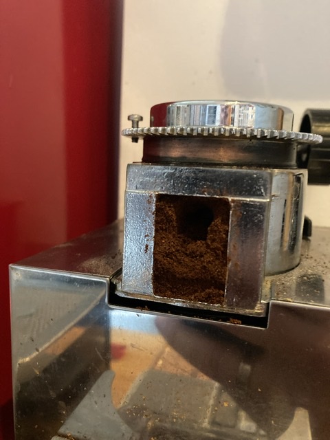 Ik kan weer koffie malen, maar nog niet helemaal klaar, de montage onder een hoek moet nog gerealiseerd worden maar de retentie is gezakt van 4 a 5 gram naar 0,9 gram.