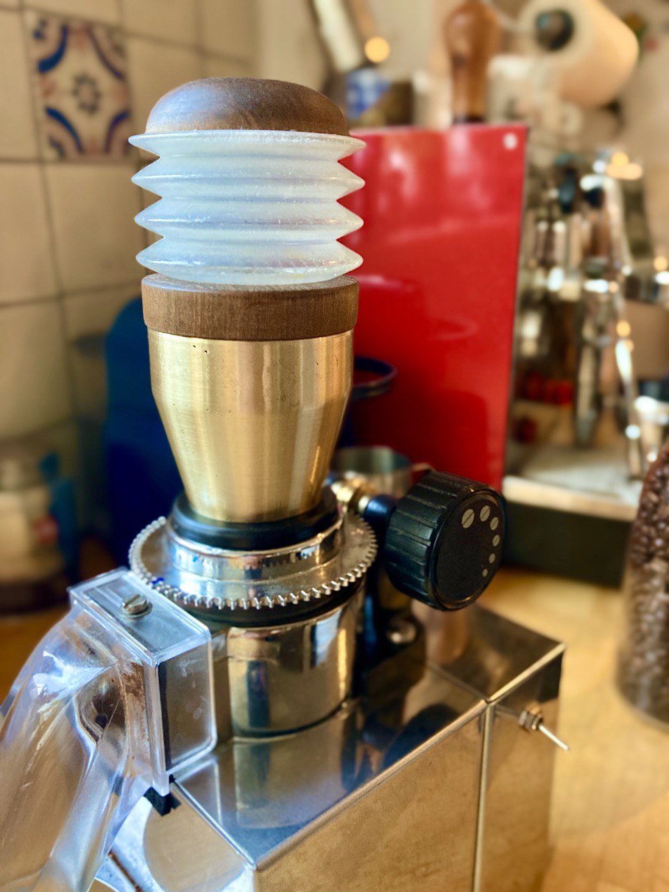 Naast mijn Domobar staat een demoka minimoka, en hoewel ik al jaren tevreden ben met de maal kwaliteit ben ik al een klein jaar aan het “single dosen” met een weegschaal en om eerlijk te zijn vind ik de retentie nogal fors, na meten zit het op een gram of 4 a 5.