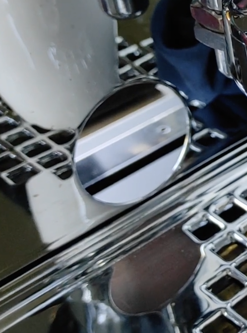 Koffie lijkt vrij hoog gedoseerd in dat bakje, centimeter onder de rand werkt hier in de lambro veel beter. De puck zet ook die volledige centimeter uit en geeft een mooie rustige extractie