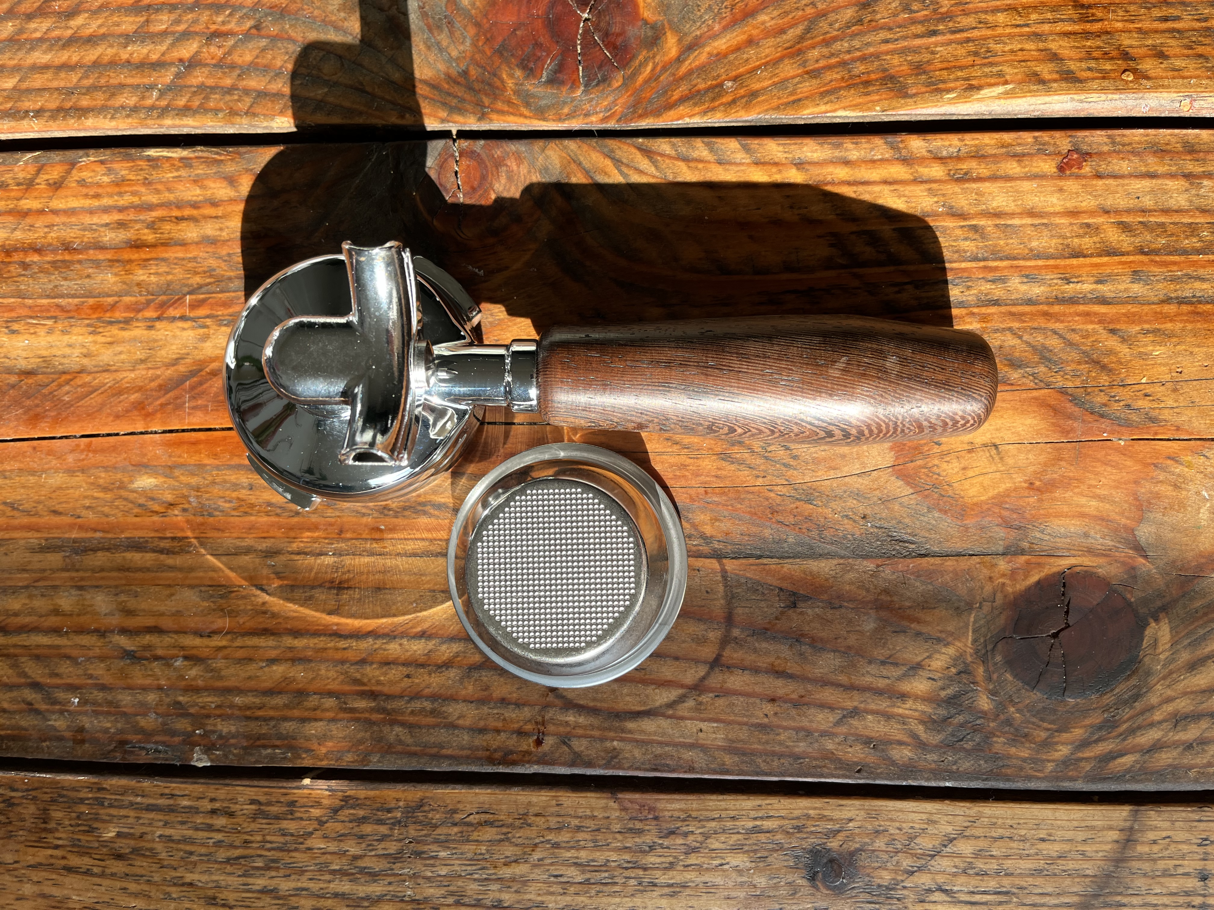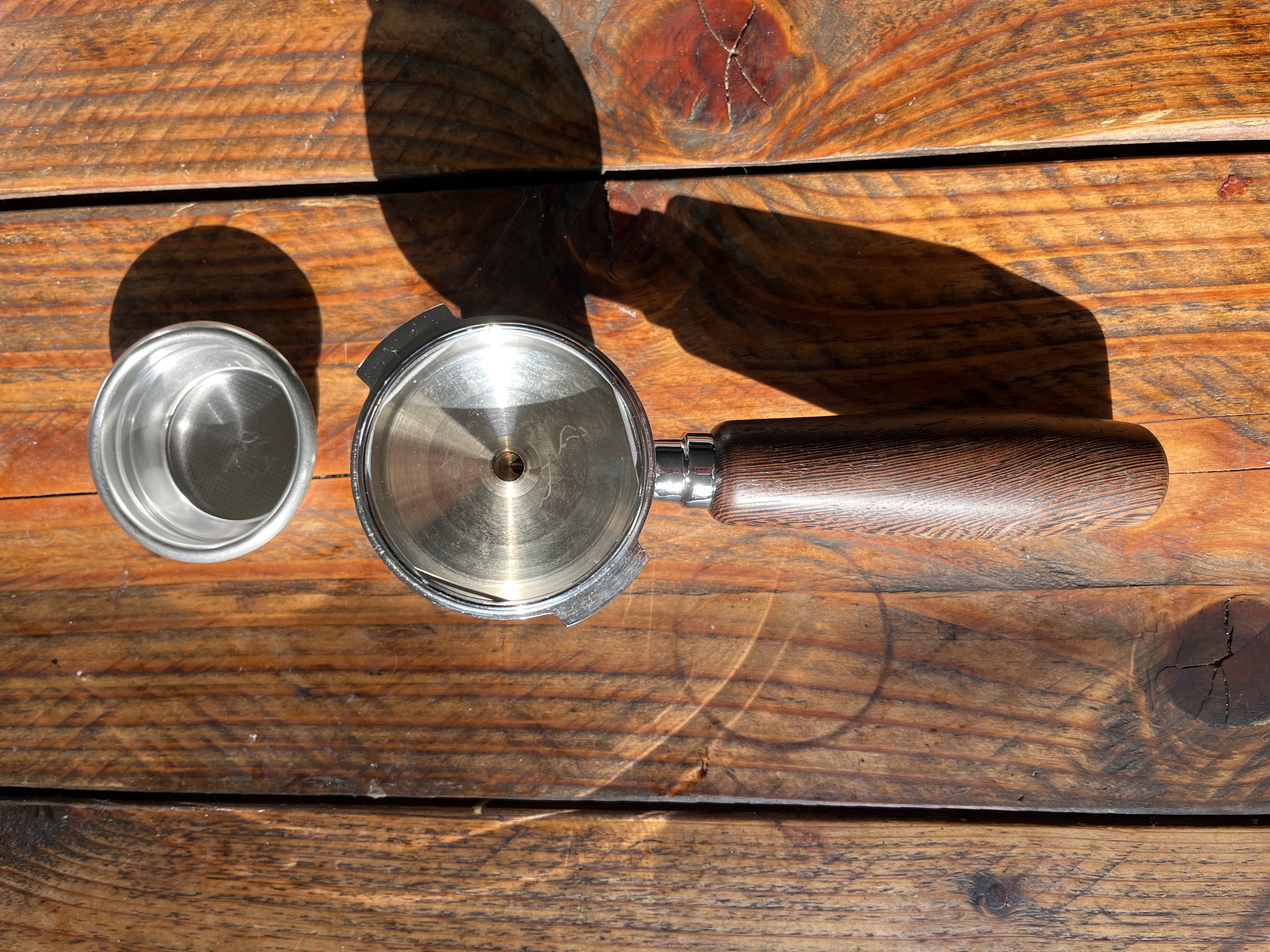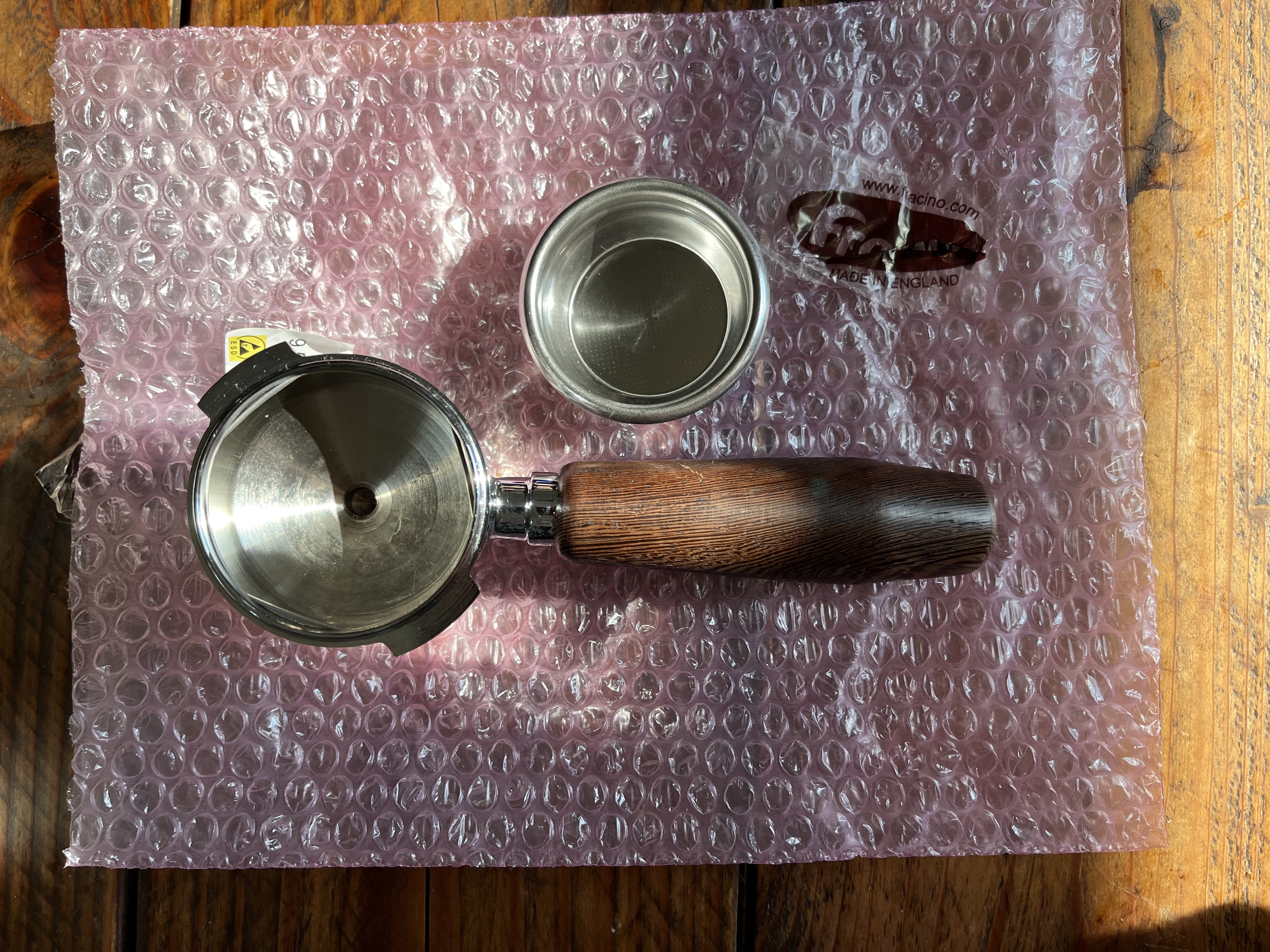Een gloednieuwe dubbele uitloops porta. Nog in het bubbelplastic, nooit gebruikt. Toen ik mijn tweedehands LR kocht zat deze er niet bij, na contact met de verkoper bleek dat hij nog wat spullen had en de dubbele porta na zou sturen. Toen had ik inmiddels al een gloednieuwe besteld. Dus bij deze een gleodnieuwe portafilter. Omdat je hem niet hoeft te importeren en de hoge bezorgkosten hoeft te betalen is het voor iemand een mooie deal! Ik zou er graag 65 euro voor willen hebben (forumprijs). Locatie is Rotterdam.