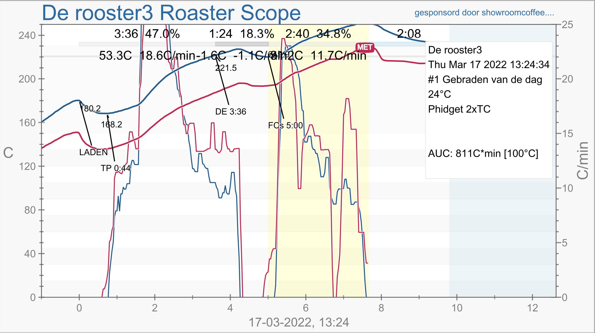 Veel gegevens ontbreken, zoals een 'legenda' waarop ik kan zien welke lijn welke probe weergeeft, BT of ET.