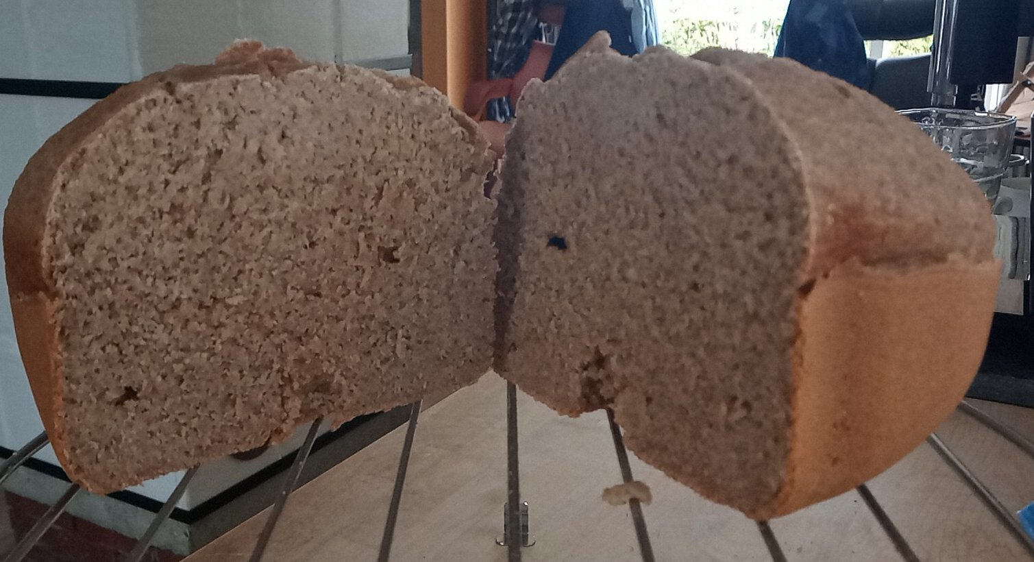 Ik ben normaal zuurdesem broden gewend en die vind ik niet zwaar, maar anderen wel. Ik zou zeggen dat dit iets zwaarder is dan de zuurdesembroden uit de winkel. Een boterham weegt al snel 100 gram.