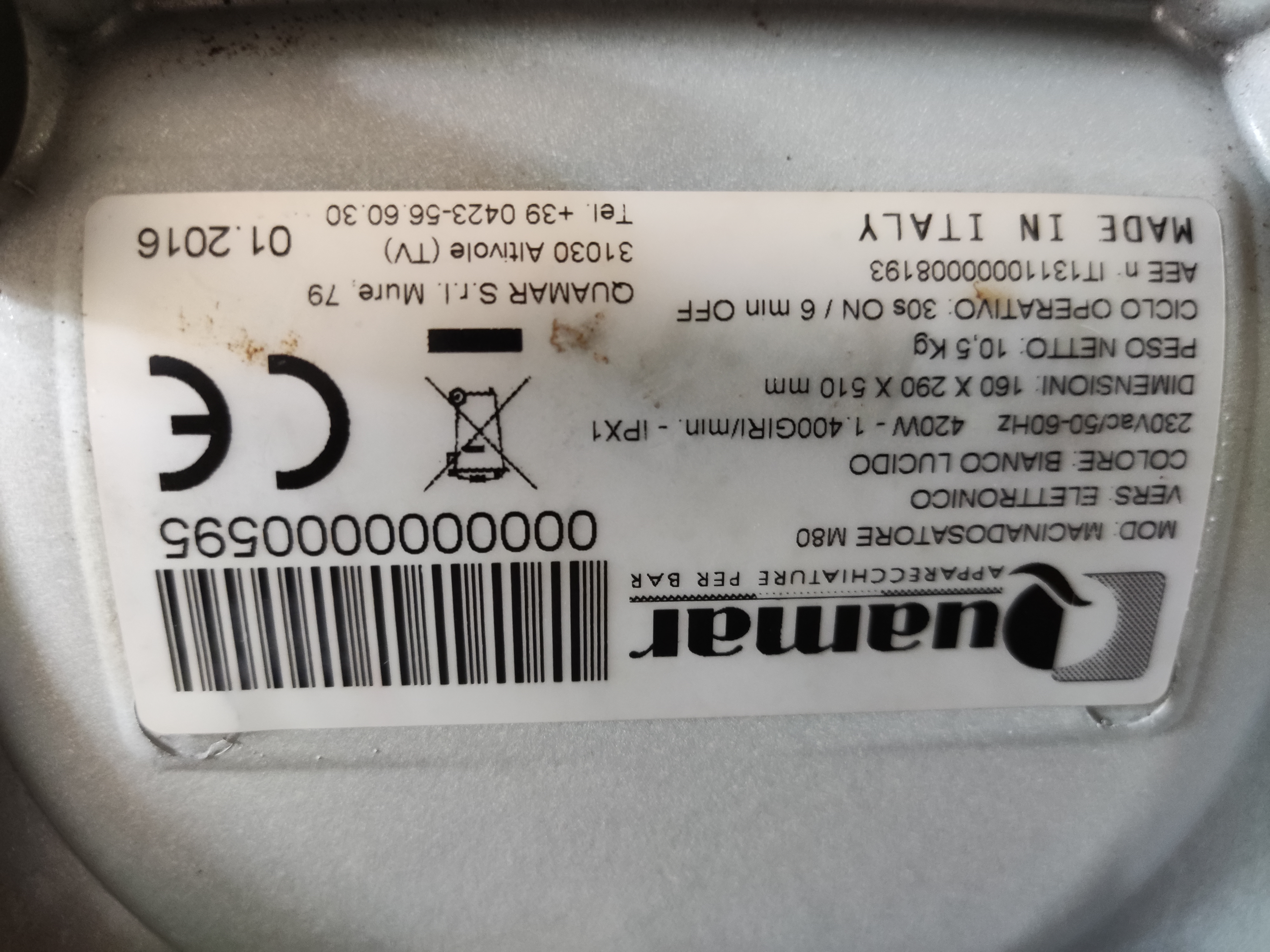 Als code onder op de machine staat M80 (zonder E), ik denk dat dit normaal is.