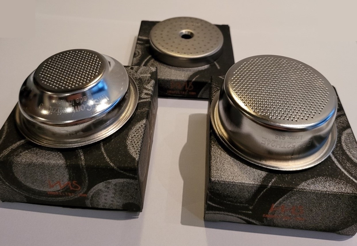 Baskets en shower screen zijn dus maar een maand gebruikt. Het liefst verkoop ik het hele setje in één keer aan een Sage / Breville / Solis bezitter die de stock filters en douche scherm wil upgraden