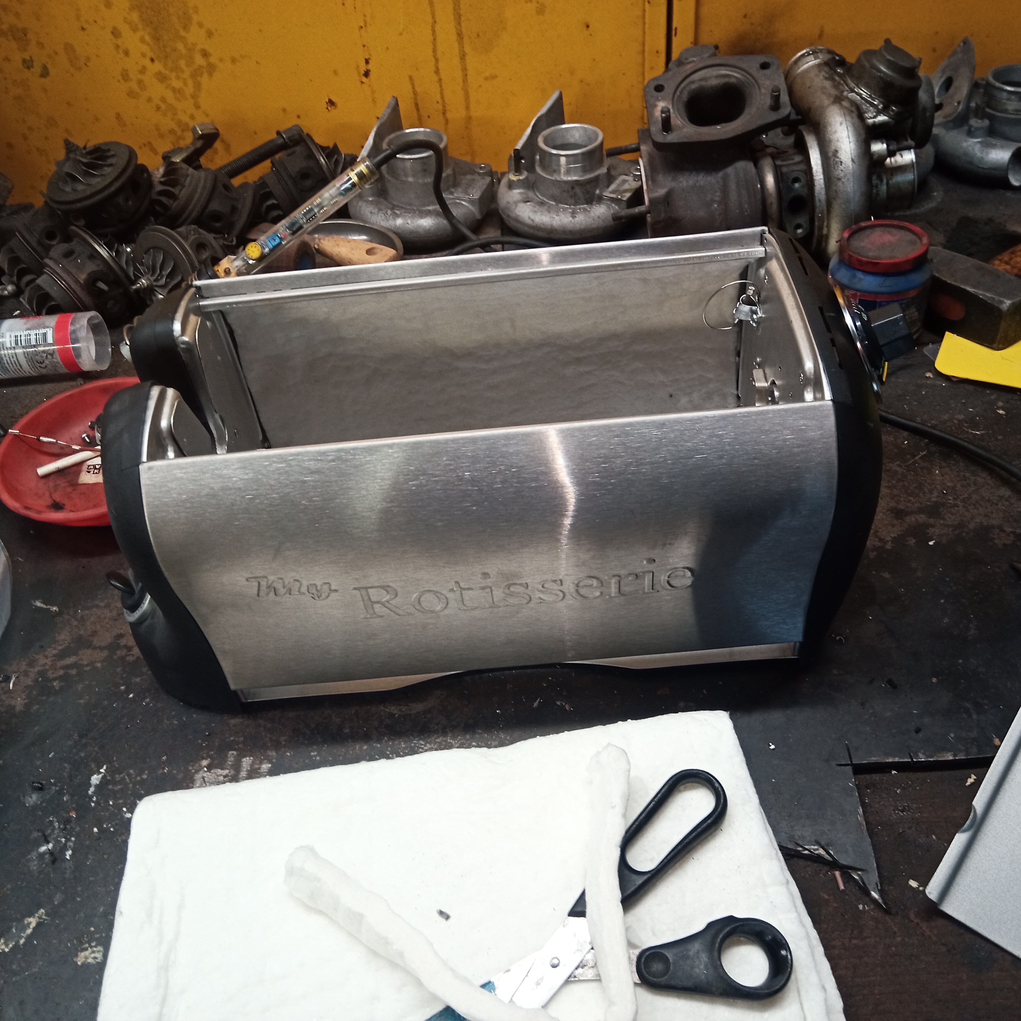Dus in principe als je en rotisery van marktplaats scoort en een instelbare thermostaat dan kom je een eind.