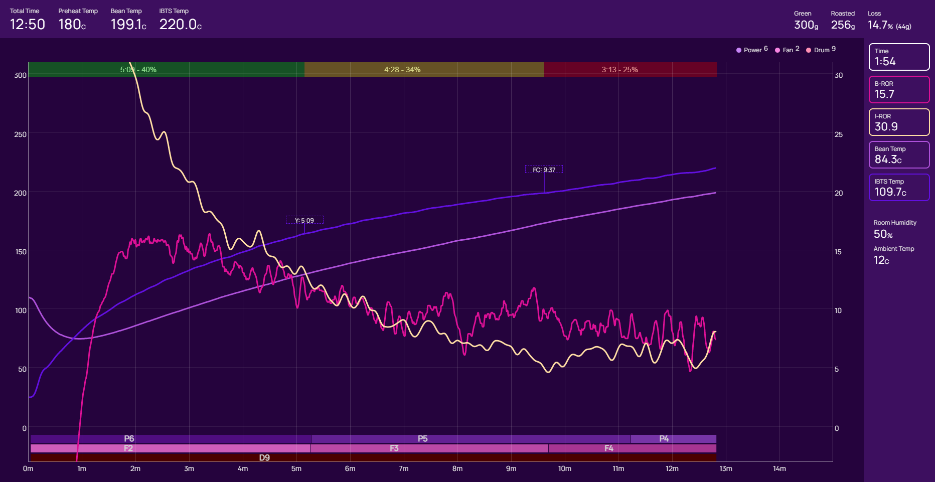 Misschien vereist het branden van 200 gram batches ook wel een aangepaste techniek. Ik heb nog nooit zo weinig per keer gebrand. Ik zie je laatste branding en die lijkt behoorlijk mooi qua opbouw en is toch erg snel.