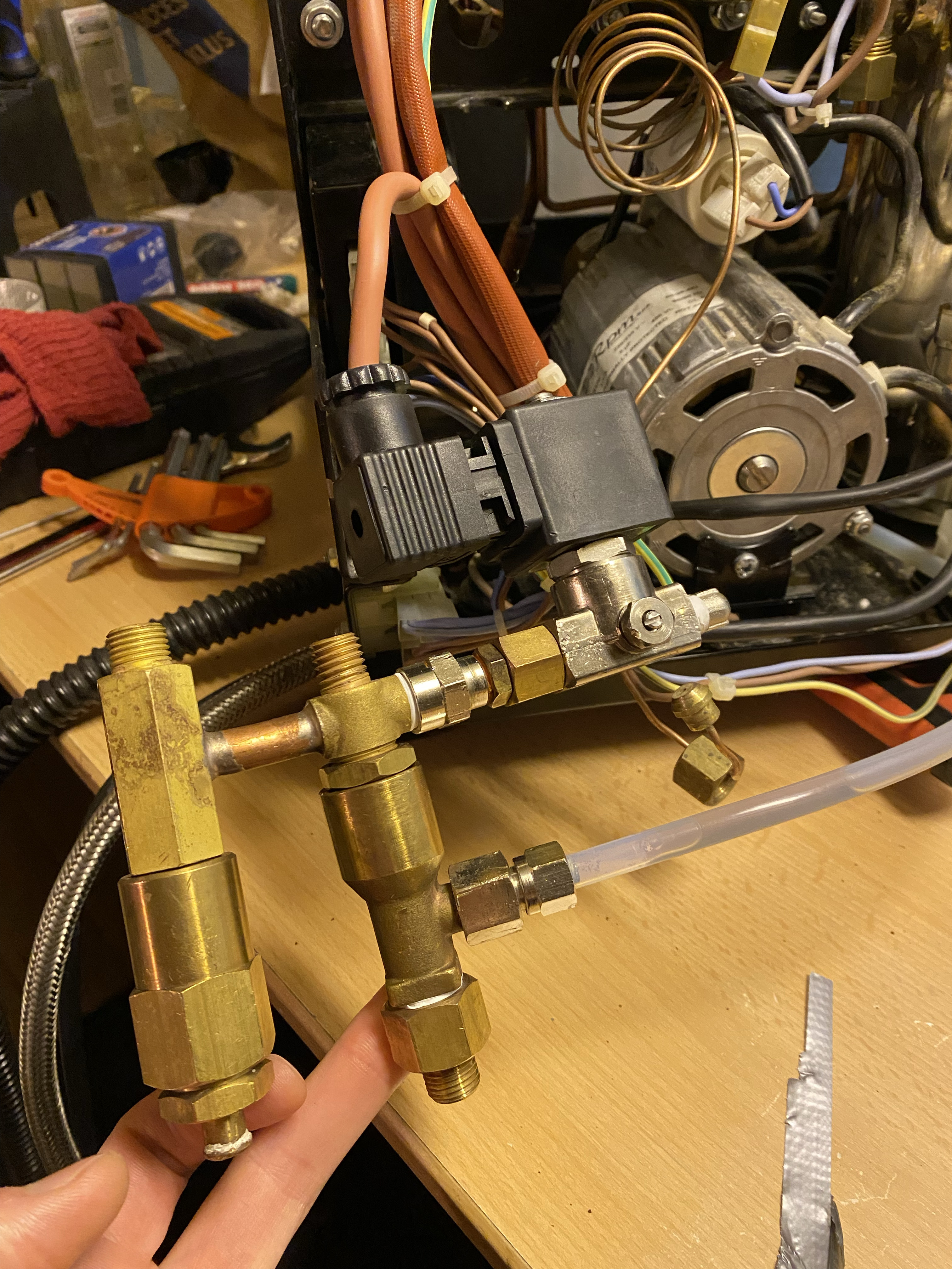 - Bij het aanzetten van de stoomboiler geeft de magneegklep op de foto (‘fill solenoid’) weldegelijk een hoorbare klik. Dit duidt erop dat hij wel gewoon werkt, althans stroom ontvangt.