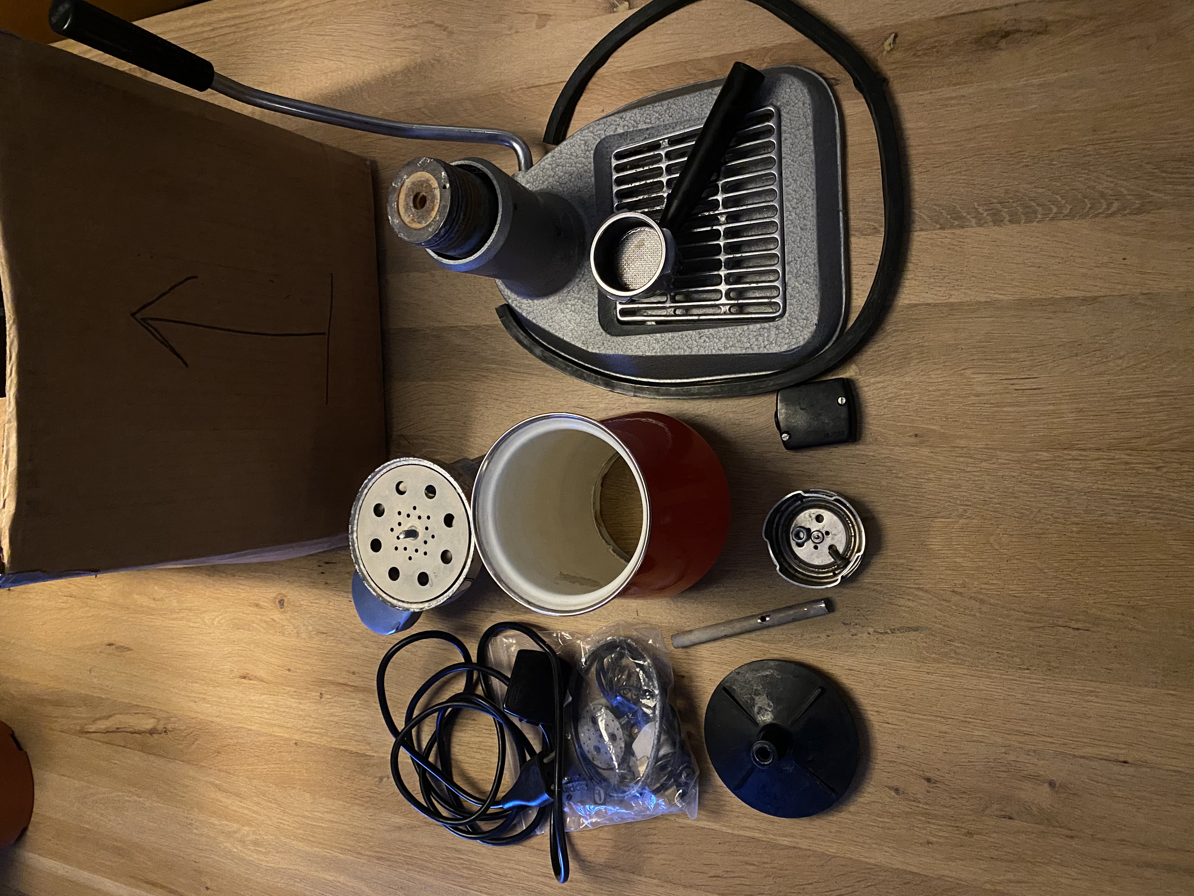 Hij is compleet, uit elkaar gehaald. Verder is er niets mee gebeurd. Werking onbekend, heeft vast wel wat nieuwe rubbertjes nodig hier en daar. Dat is nog allemaal verkrijgbaar.