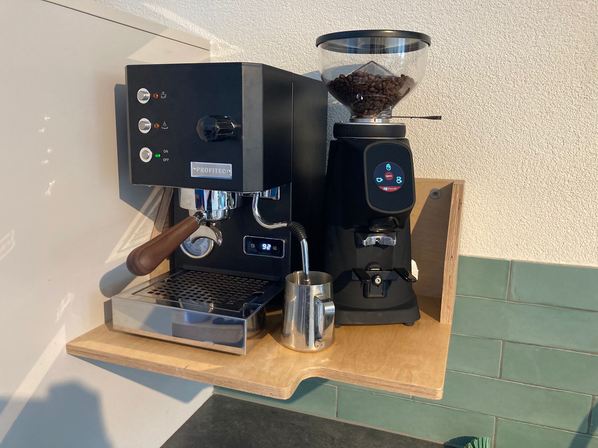 Maar, wel een heerlijke kopje koffie met een perfect fluffy maalsel, in een kortere tijd dan de Compak K3, met een fantastische portafiler houder.