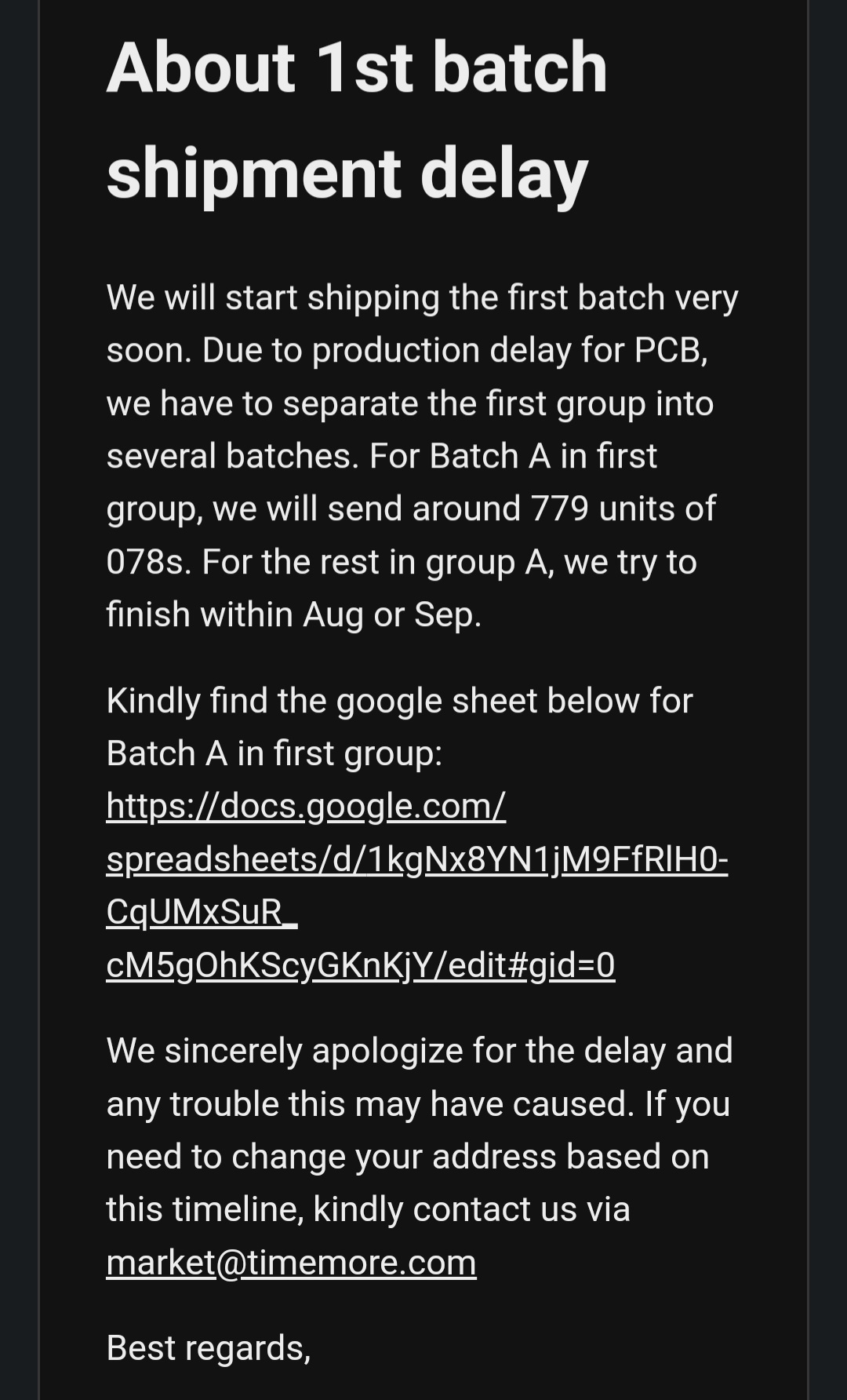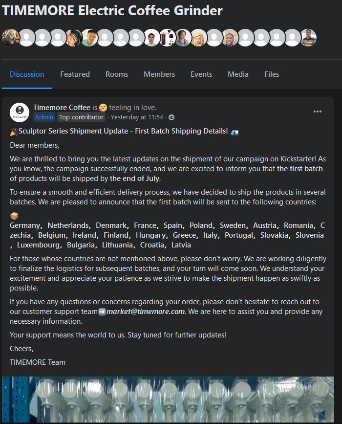 Nee, in een Facebook groep van Timemore (waar je toegang toe moet vragen)... Ik snap niet echt waarom ze het daar zouden posten en niet als update in Kickstarter.