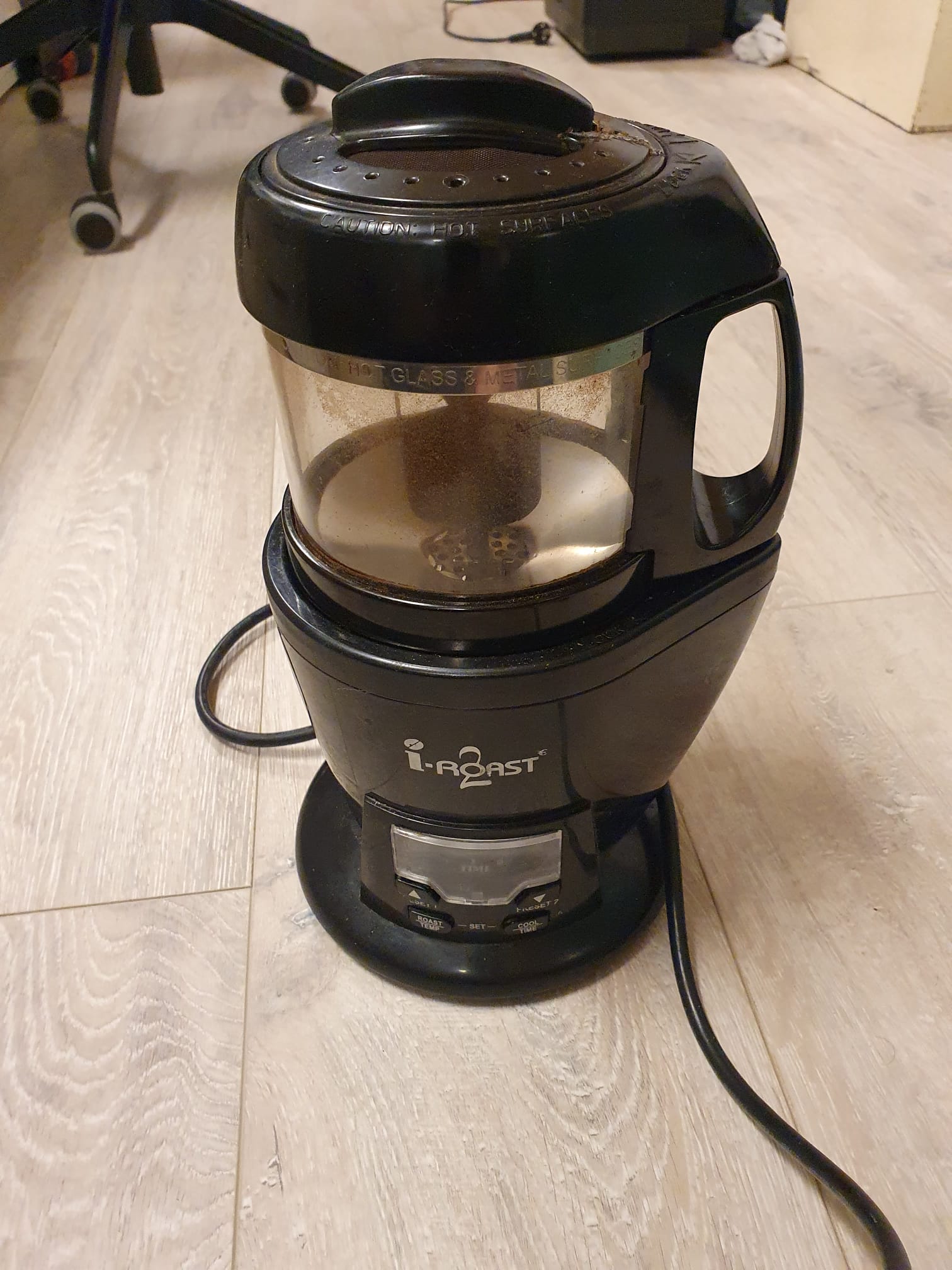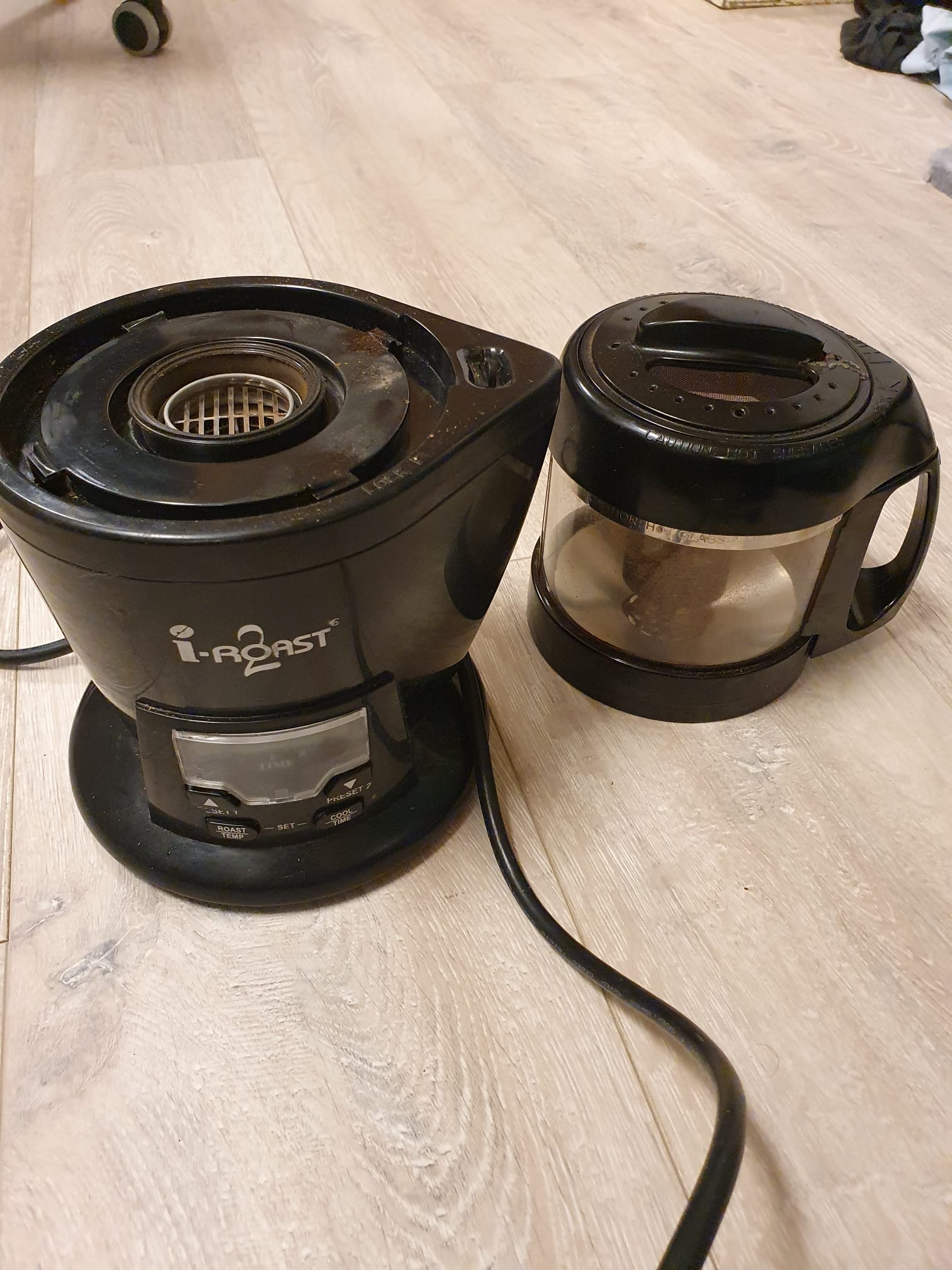 Bij deze biedt ik mijn I-roast 2 aan die ik een tijdje terug van een mede-forumlid heb overgenomen. De deksel is niet meer helemaal top maar wel functioneel (poging tot lijmen heeft niet gewerkt). Reden van verkoop: zorgt meer consistentie en heb van een forumlid een gene cafe overgenomen. Lees je even in over het ding. Temperatuurprofielen zijn niet je van het en de temperatuur is afhankelijk van de hoeveelheid chaff (washed coffees zijn t beste). Roast zon 100-120 gram en over het algemeen zijn de brandingen redelijk homogeen.