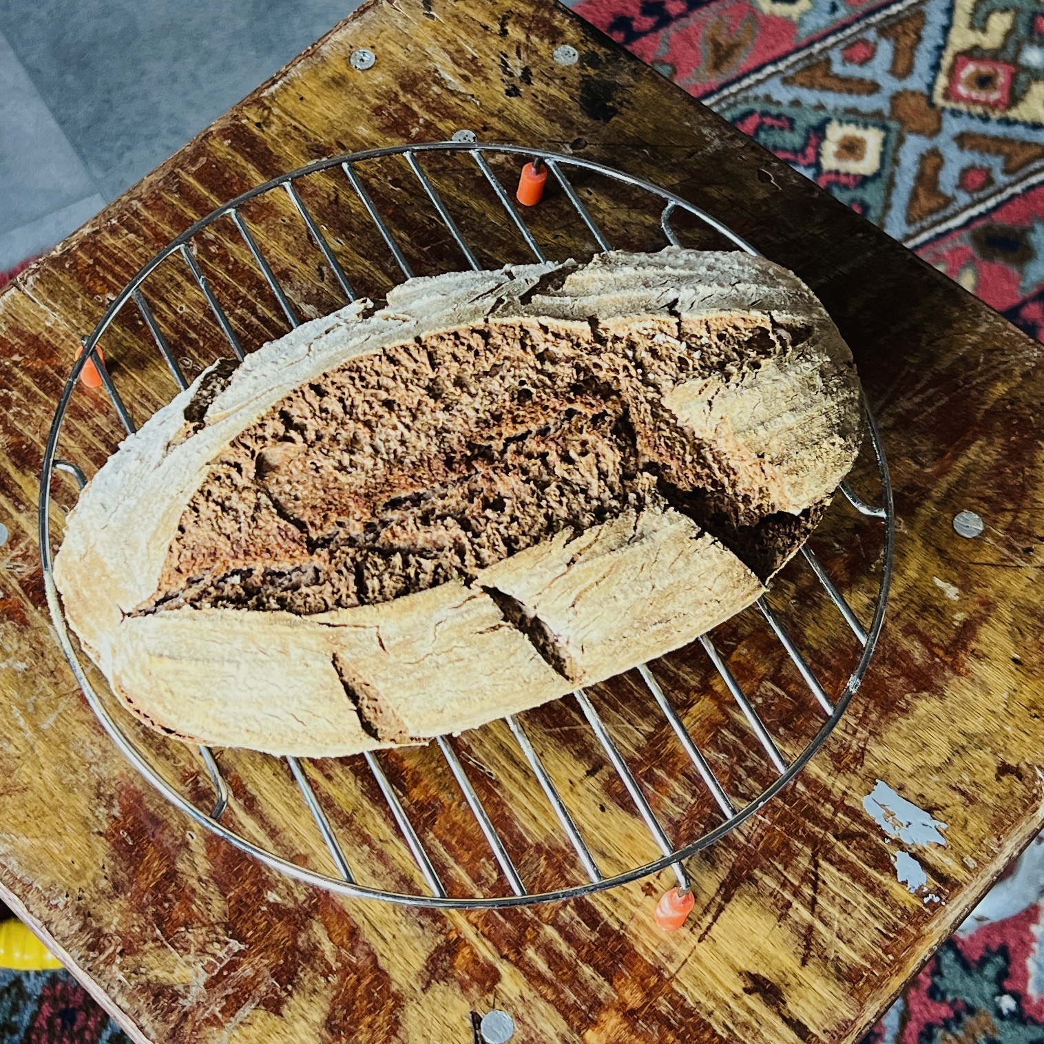 Ja, het bakken is gelukt. De smaak is prima, het is stevig met een goede bite (hoe schrijf je dat?), niet klef en de korst is niet te hard.