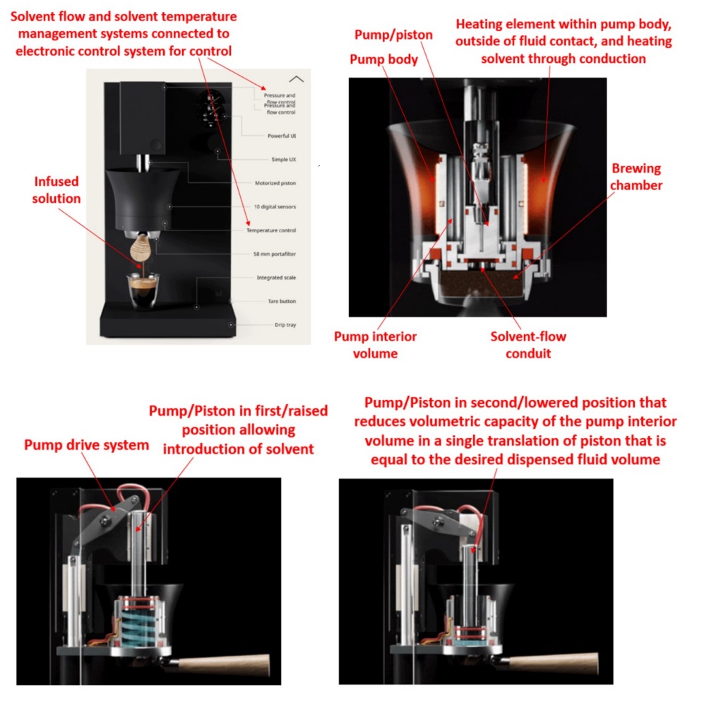 Zou gaan om Duvall Espresso, https://www.duvallespresso.com/ een machine die al jaren in de maak is, maar nooit het daglicht heeft gezien, en waarschijnlijk ook nooit zal zien. Ze hebben zelfs een pagina met al hun patenten https://www.duvallespresso.com/pageip