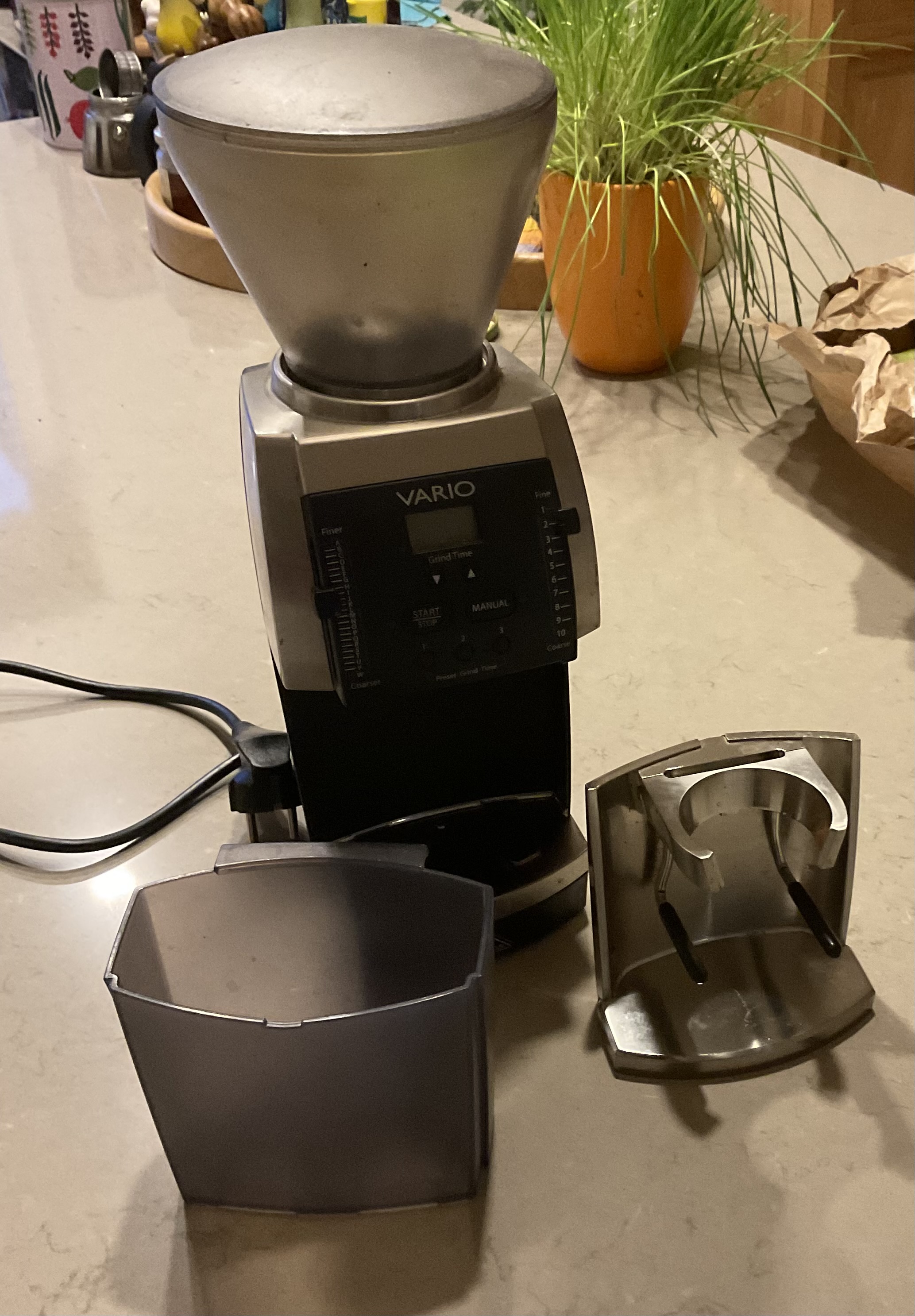 Omschrijving: Te koop omdat m’n nieuwe molen (Timemore Sculptor 078S) eindelijk binnen is. De molen heeft een productiedatum van 11/11, dus is een kleine 12 jaar oud. Een half jaartje geleden is ie gestopt met werken. Ik heb ‘m toen open gemaakt en helemaal schoongemaakt. Hij was erg vies van binnen. Daarna heeft ie het weer een half jaartje goed gedaan tot vlak voordat m’n nieuwe molen gearriveerd is. Ik weet niet wat er mee mis is. Ik heb zelf geen tijd om er naar te kijken en om ‘m werkend te krijgen. Hij is dus voor iemand die zin heeft om ‘m weer werkend te maken of voor iemand om ‘m te kanibaliseren voor reserve onderdelen. Zoals op de foto te zien is heb ik ooit de plastic portafilterhouder vervangen door een zwaardere RVS-uitvoering die een stuk degelijker aanvoelt dan wat er origineel meegeleverd was.
