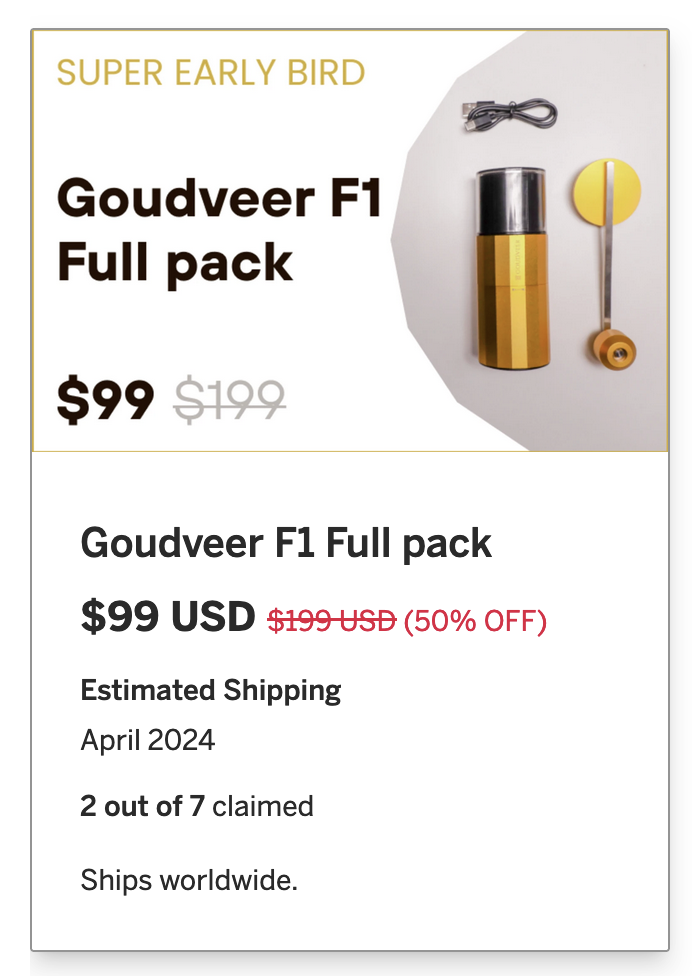 Inmiddels is de molen binnen. Uiteindelijk is het project via Indiegogo alsnog tot stand gekomen. Met veel vertraging, onduidelijke communicatie en veel te hoge verzendkosten. Inmiddels heb ik een Chinese molen in handen die autmatisch kan malen. Ik zal binnenkort wat foto's delen.