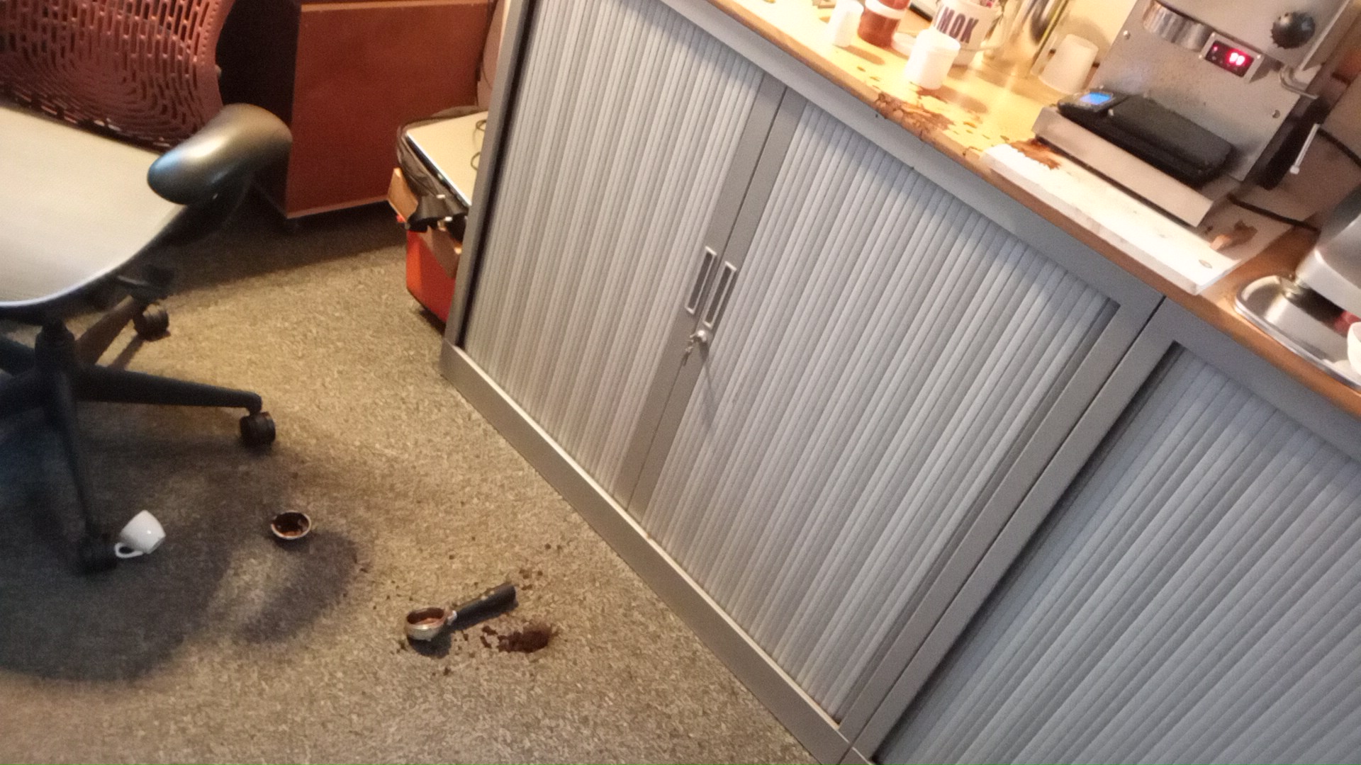 Met de Strega zelfs al twee keer, en in aanvulling van de puinzooi onder de machine zwiert ook de hendel dan met gezwinde spoed langs je hoofd... Of er tegen.