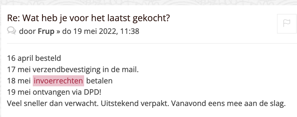 Tegenwoordig heeft de douane hun systemen ook wel op orde. Waar je voorheen misschien 1 op de 5 een keer BTW en importkosten betalen moest, krijg je tegenwoordig vooraf al een digitale betaallink doorgestuurd. In de praktijk valt het bedrag altijd tegen, o.a. door ongunstige wisselkoersen die gehanteerd worden.