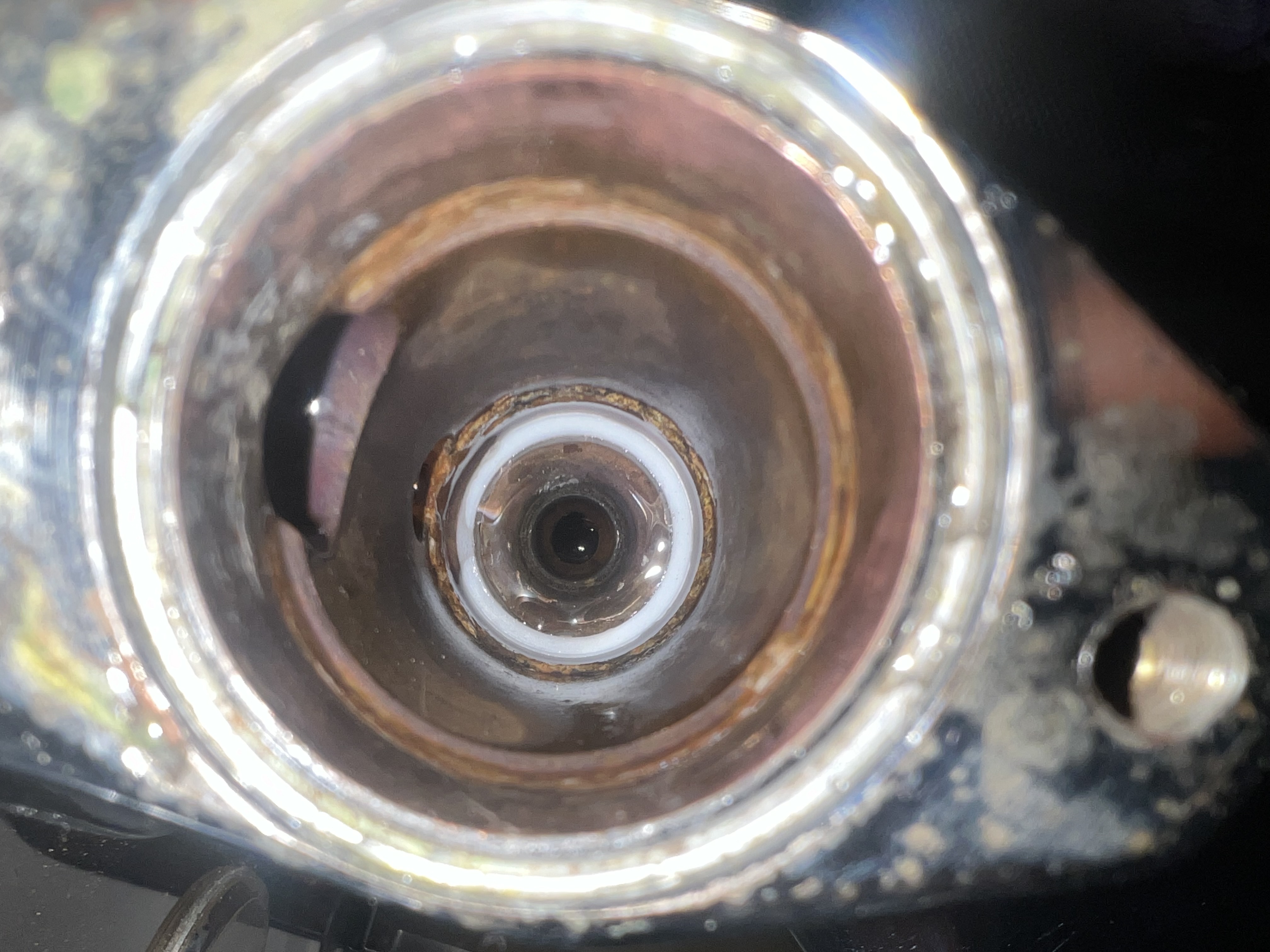 Misschien ‘t rubber in het ventiel niet meer goed (heb ‘m niet uit elkaar gehaald voor ik ‘m in ‘t zuur heb gelegd)