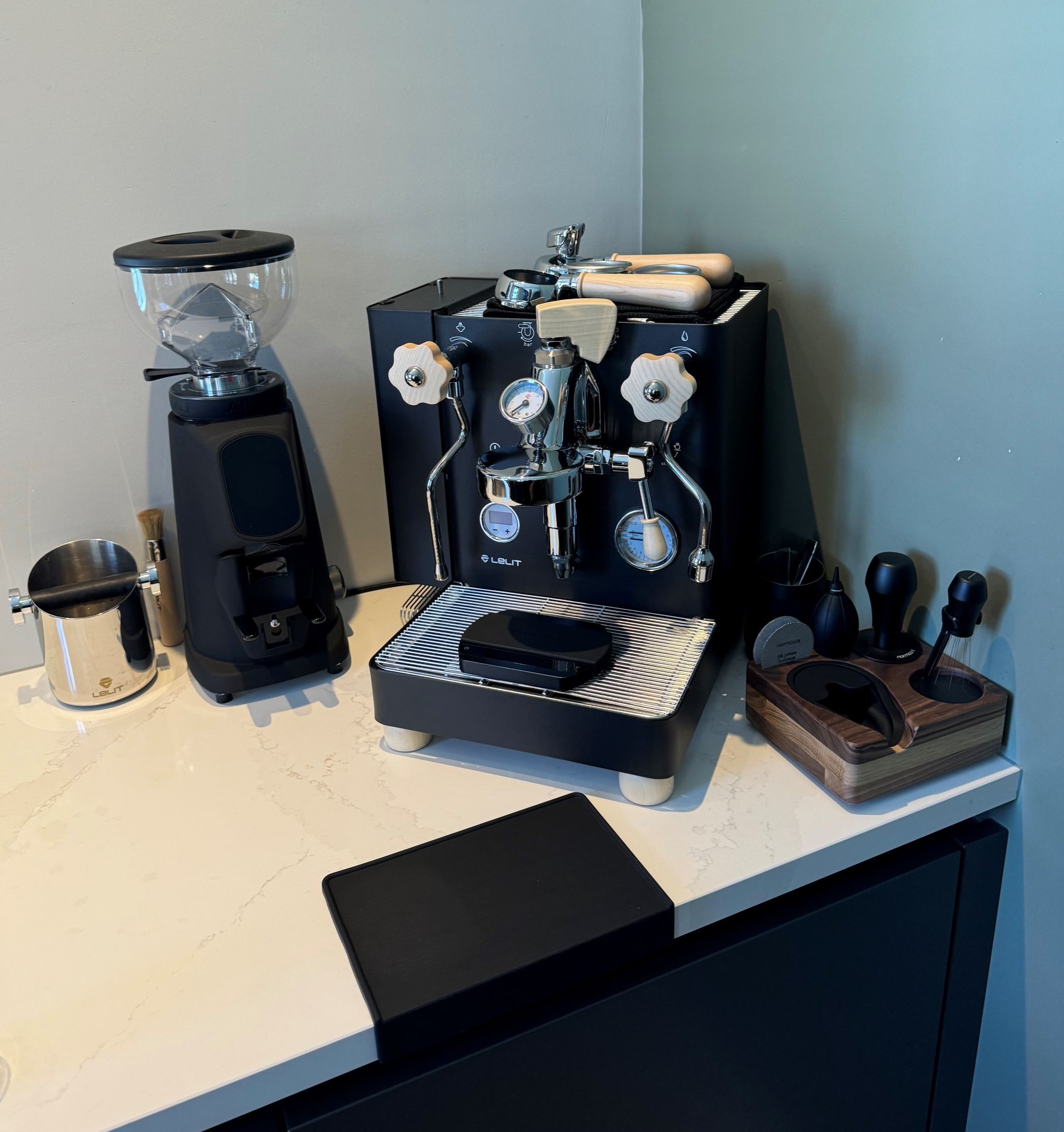 Na een lange voorpret periode heb ik laatst samen met mijn vriendin besloten om in te stappen met een Bianca V3 Black en een Fiorenzato Allground Sense. Mijn vriendin zag niet direct de noodzaak, wilde uiteindelijk wel instemmen, als het maar niet te ingewikkeld was allemaal. In een ver verleden had ze al wel wat geleerd in de horeca met espresso apparaten. Daarmee had ze het beeld dat het veel tijd zou kosten en gedoe, maar inmiddels denken we daar anders over.
