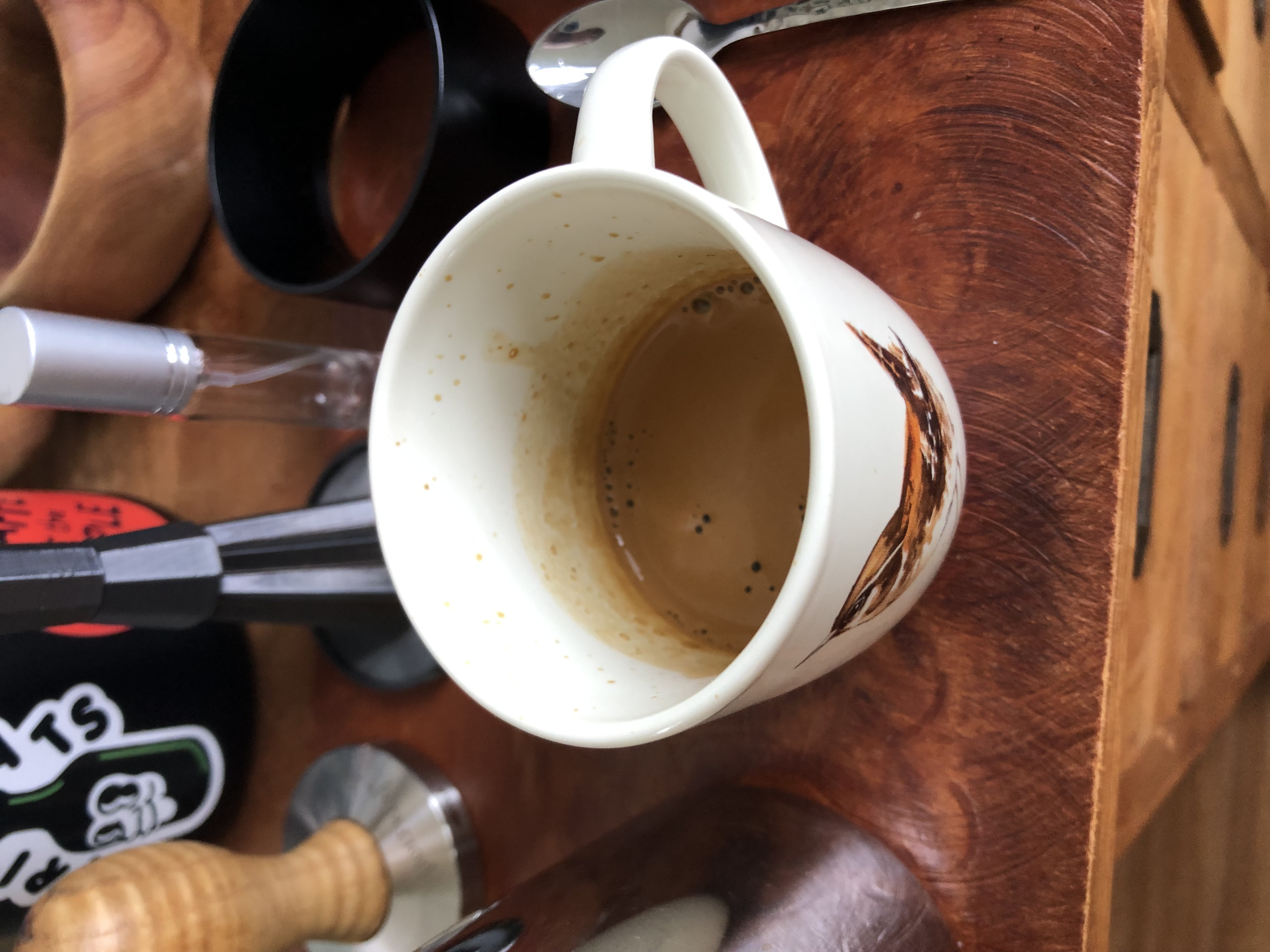 Tja de kwaliteit is minder dan de bonen die ik normaal bestel… maar voor €3,50 per 250g ben ik best wel onder de indruk. Moet wat fijner malen omdat je merkt dat de weerstand minder is aangezien het toch oudere bonen zijn. Heb bewust het 18 grams filterbakje over gedoseerd naar 19 gram om de ruimte boven de puk te verkleinen. Maar het resultaat van vervolgens 38 gram espresso in 25 seconde is gewoon best prima, al helemaal voor een cappuccino of americano.