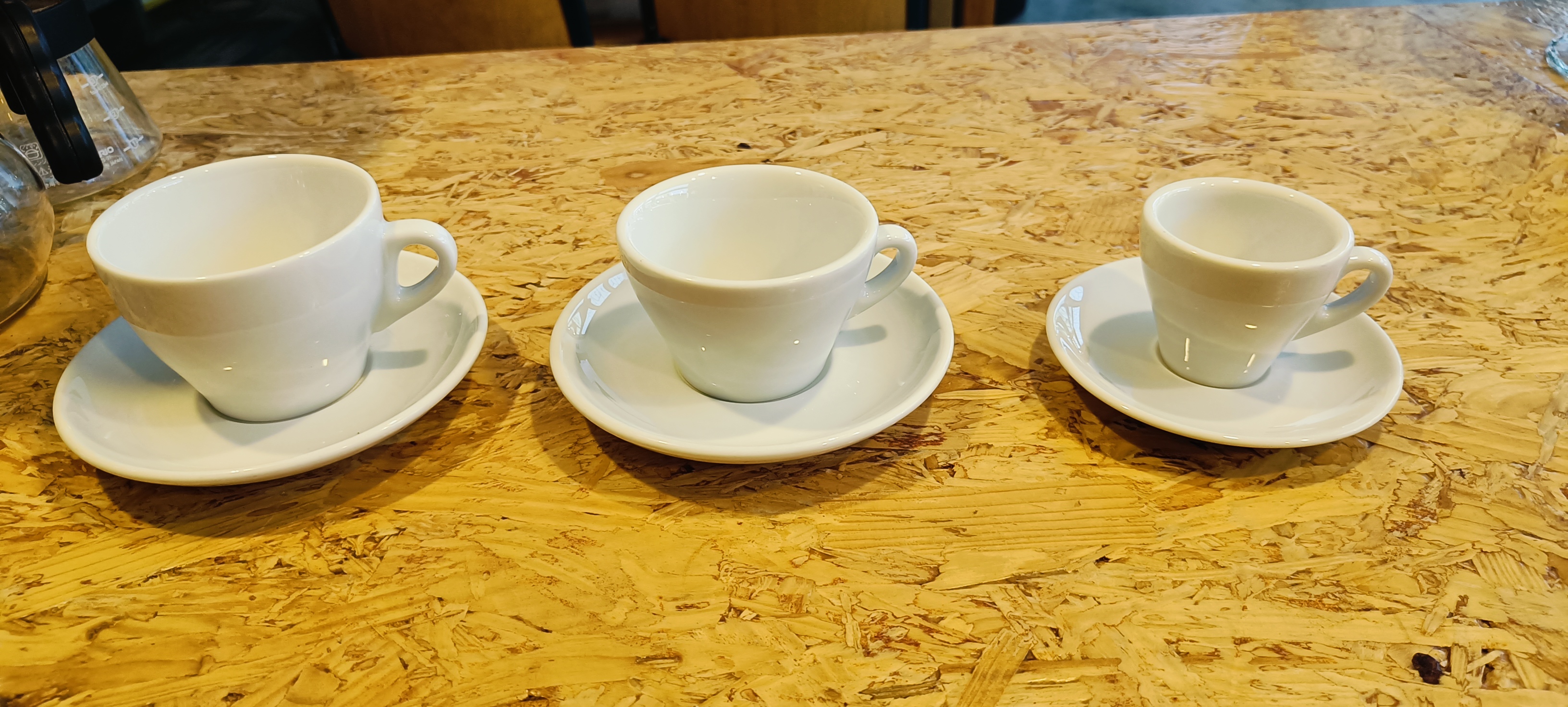 Espresso 90ml cappuccino 180ml en latte koppen 250ml.