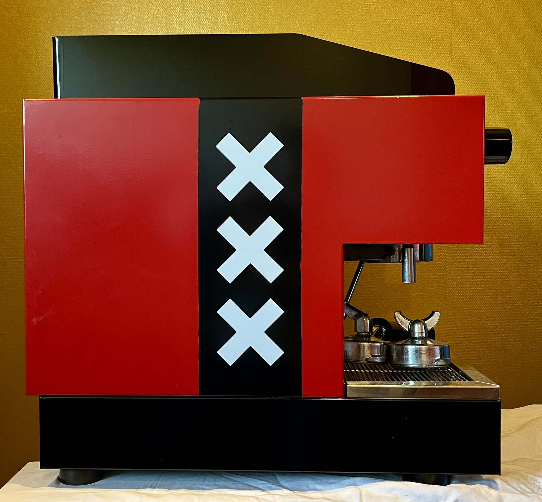 - Op marktplaats kocht ik een Gaggia TD. Helemaal uit elkaar gehaald, alles gereinigd en gereviseerd. Opnieuw laten moffelen in de kleuren van Amsterdam.