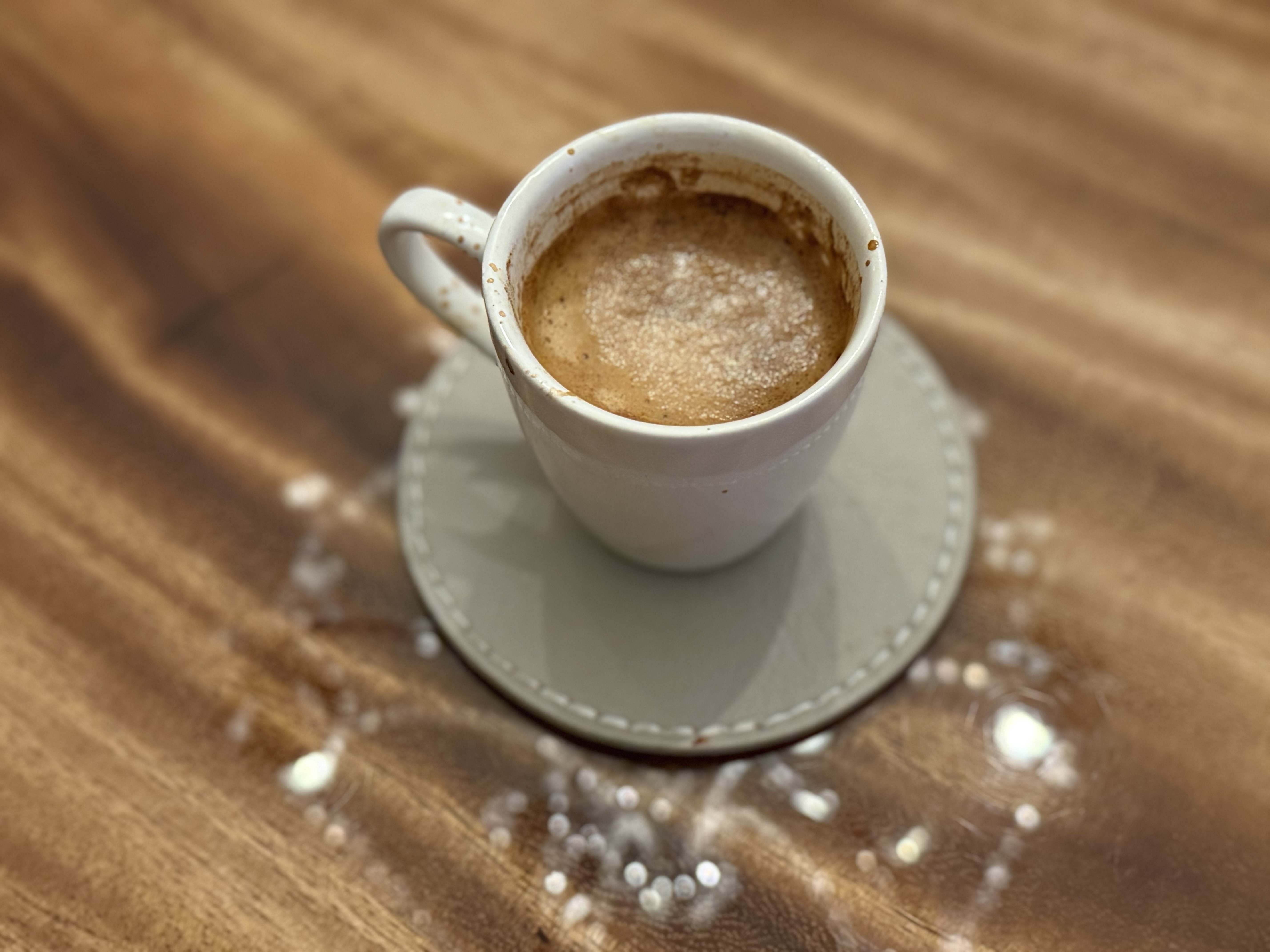 Heb de maalgraad nu op 23 staan en hij is eindelijk in balans aan het komen. 18 gr werd 41,8 gr espresso in 32 seconden. Hij glijdt nu iets dikker over de tong en ik denk iets van amandel te proeven.