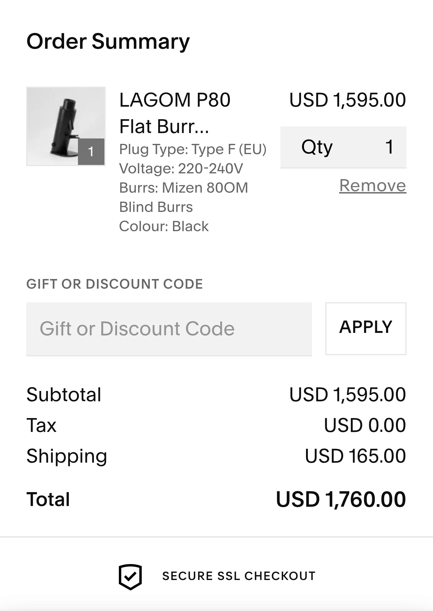 Die $195 is alleen de shipping cost. Je bedoelt waarschijnlijk $165