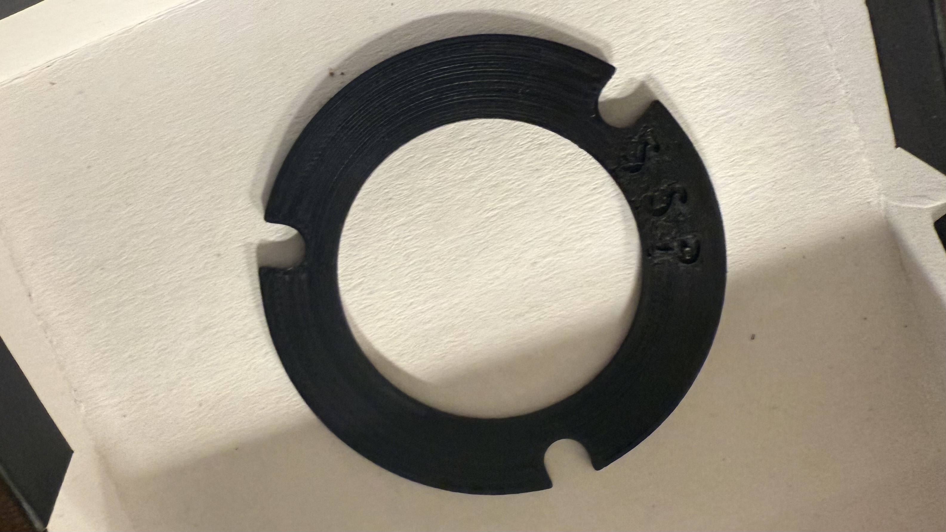 Ik heb daar een oplossing voor gemaakt door een ring te printen die precies mooi in de in de opening van de schijf valt en precies om de as van de philos. De ring is iets lager dan de maalschijf zelf zodat het niet in problemen komt met de hoogte uitlijning.