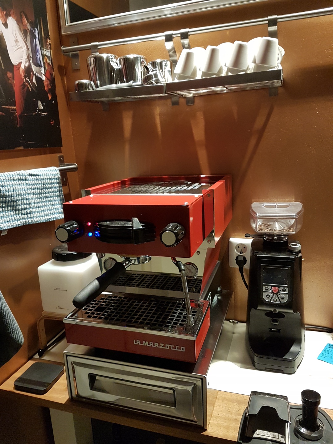 Wat een oerlelijk ding! Grotesk en over de top! Idiote hendels waar je schijnbaar aan moet gaan hangen en die gang die je ermee moet maken lijkt me vrij ongezond om daar landurig mee te werken, ik hou het op m'n Orione!Erik82 schreef:De nieuwe LaMarzocco Leva.