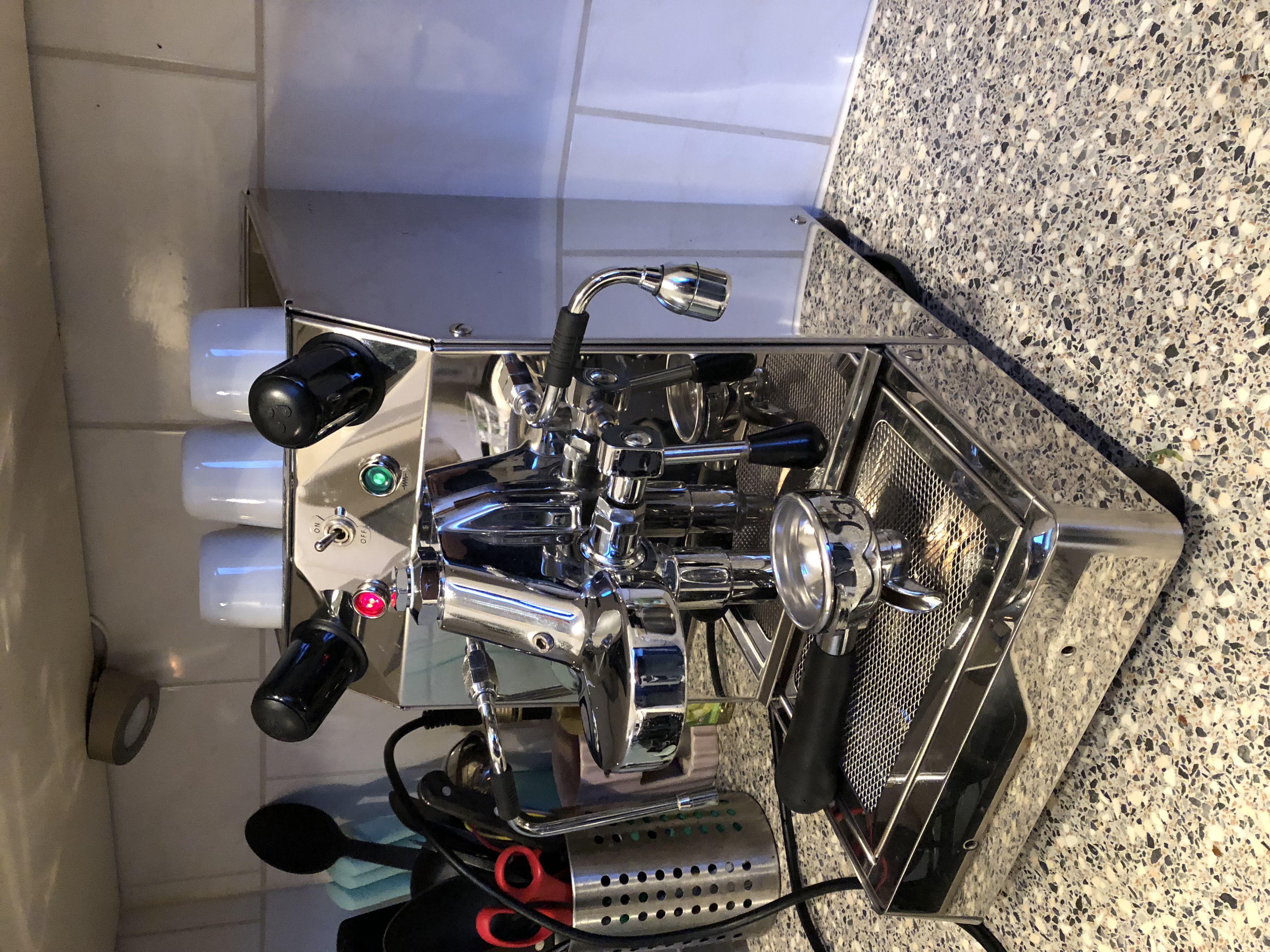 De bedoeling is voor nu te genieten van heerlijke koffie. Uiteindelijk wil ik hem volledig stippen en opnieuw opbouwen. Alles van binnen netjes maken en standaard onderdelen vervangen voor betere. Zoals de pressostaat vervangen voor een Arai, plastic leidingen vervangen, overdruk ventiel enz.
