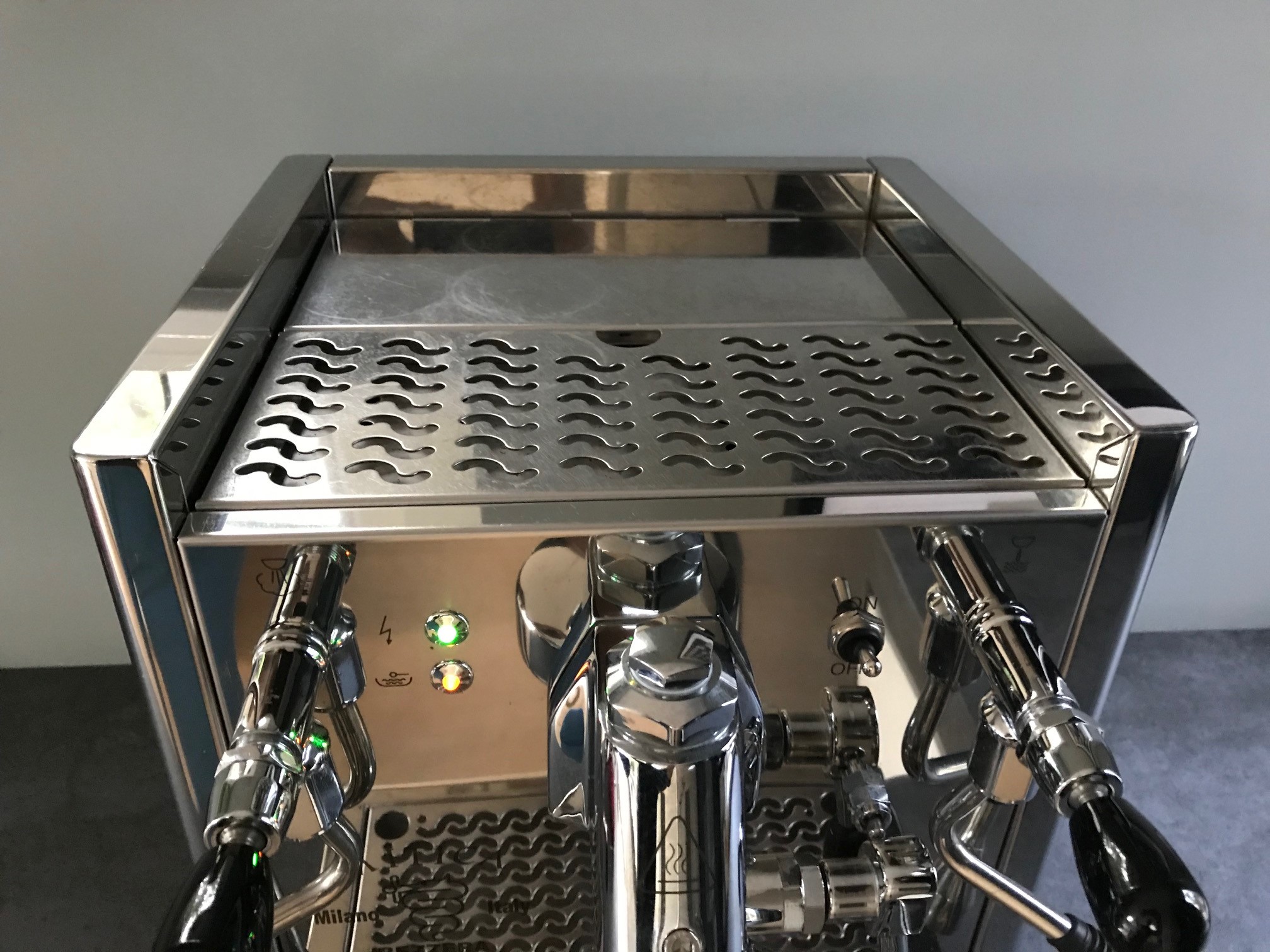 De OPV is terug gezet naar 9bar voor wat minder druk. De OPV is ook gesmeerd, dus heeft niet meer het Bezzera kwaaltje van het fluitende geluid.