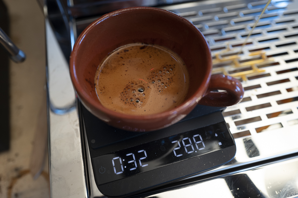 Tonino #121, dus eigenlijk ver buiten espresso-bereik, komt er dus best lekker uit. Kruidig, laurier en geen droge nasmaak wat ik normaal wel heb met (te) licht gebrande bonen.