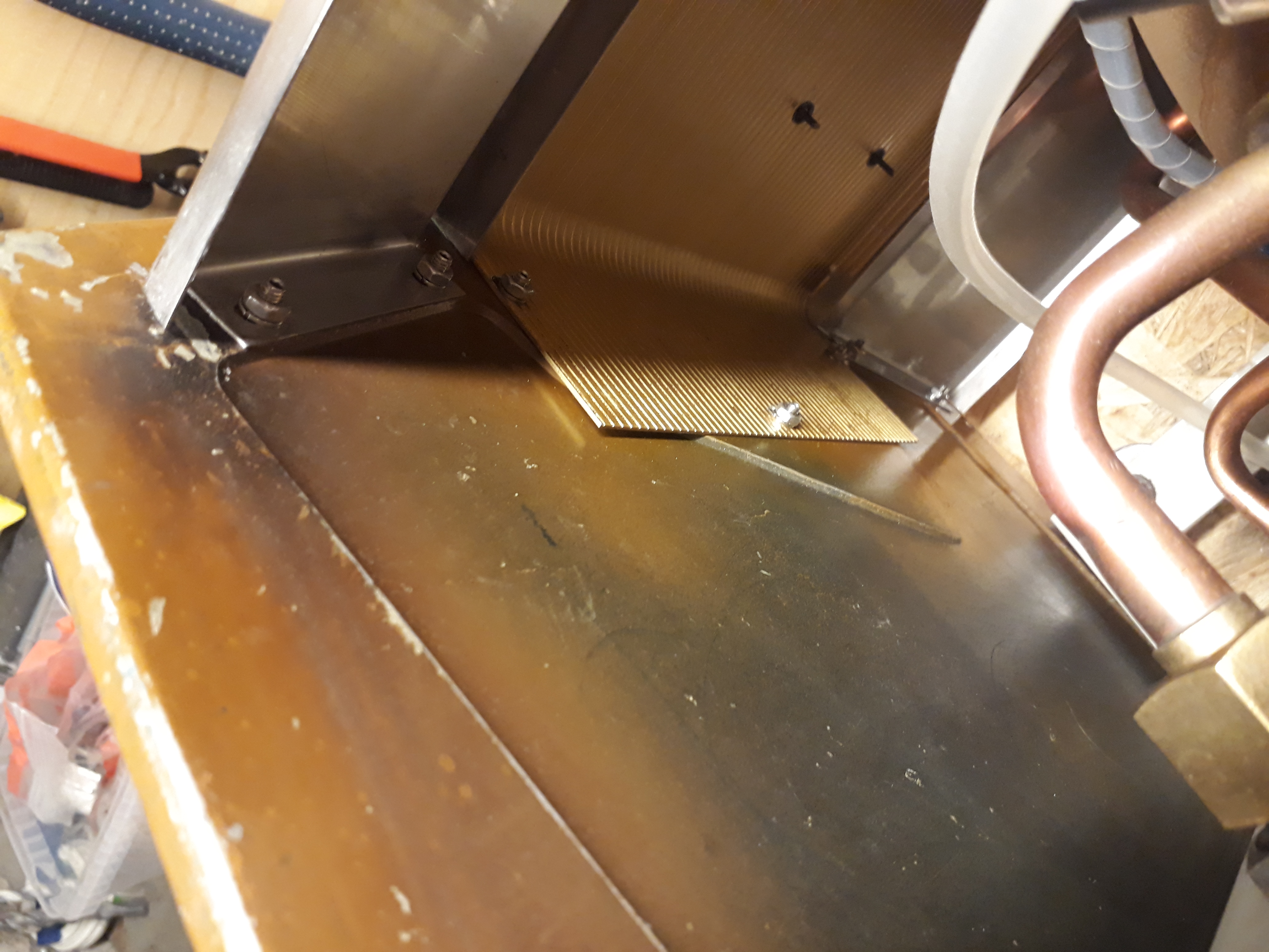 In goed overleg met Frank ben ik nu bezig om een aparte ophanging te maken voor de achterwand. Dit zal door middel van een 2 mm dunne RVS plaat zijn, die met 7 M4 boutjes getapt zal worden.
